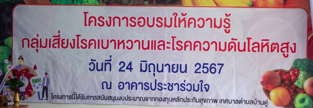 วันนี้ 24 มิถุนายน 2567 เวลา 09.00 น. นายวาที ยอดบุตร รองนายกเทศมนตรีตำบลบ้านดู่ ให้เกียรติเป็นประธานเปิดโครงการ อบรมให้ความรู้กลุ่มเสี่ยงโรคเบาหวานและโรคความดันโลหิตสูง