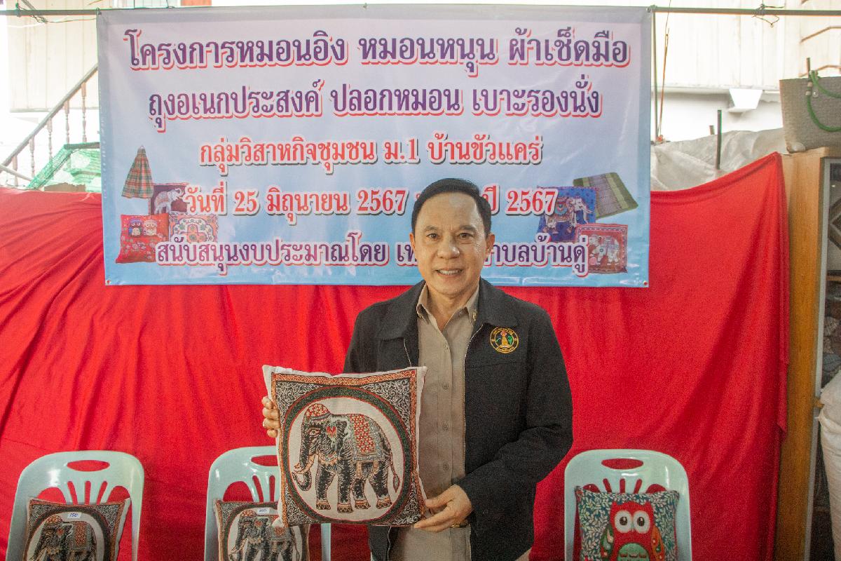 วันนี้ 25 มิถุนายน 2567 เวลา 10.00 น. นายวาที ยอดบุตร รองนายกเทศมนตรีตำบลบ้านดู่ ให้เกียรติเป็นประธานเปิดโครงการหมอนอิง หมอนหนุน ผ้าเช็ดมือ ถุงอเนกประสงค์ ปลอกหมอน เบาะรองนั่ง