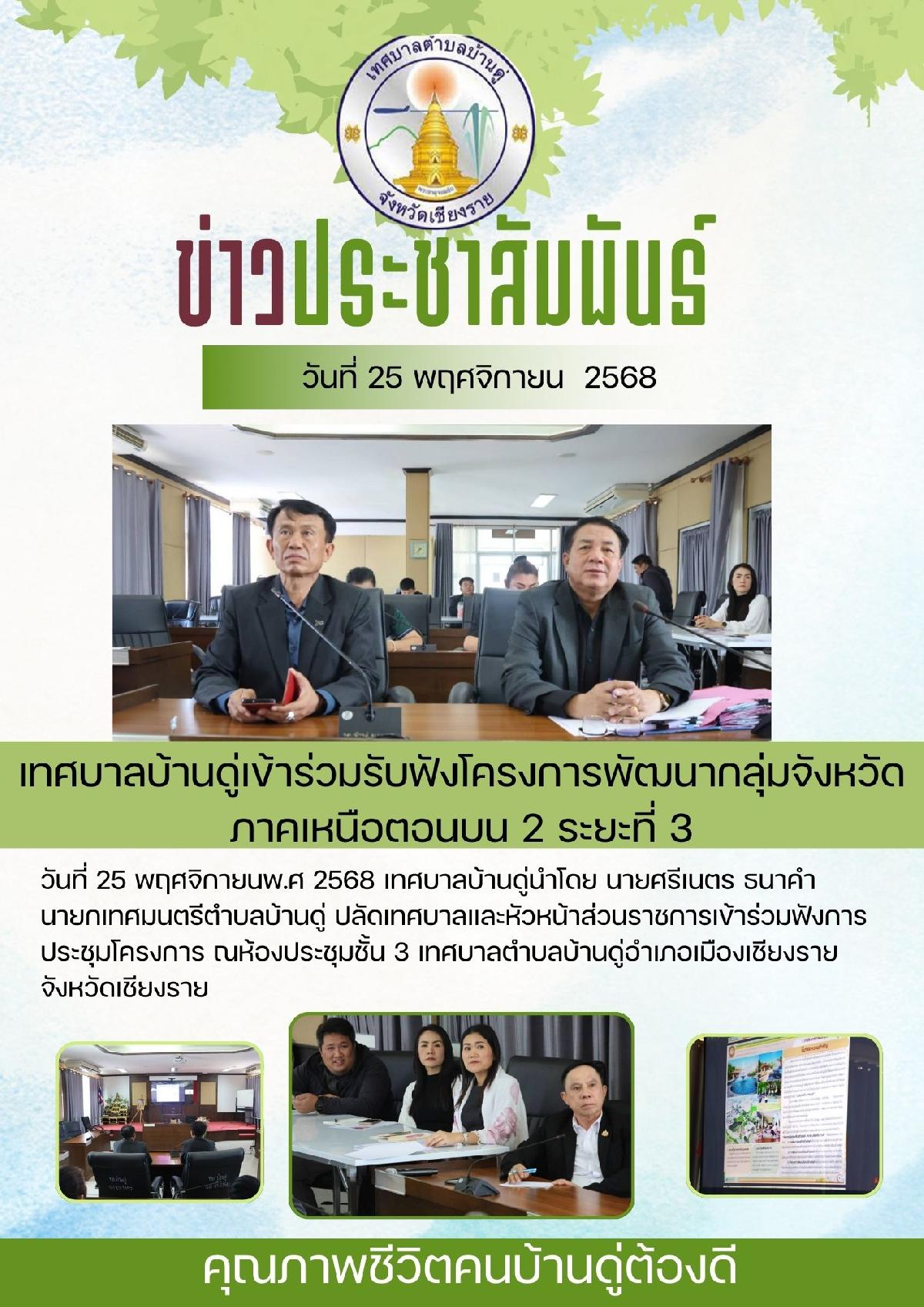 25 พ.ย. 68 เทศบาลบ้านดู่ เข้าร่วมฟังการประชุมโครงการพัฒนากลุ่มจังหวัดภาคเหนือตอนบน 2 ระยะที่ 3