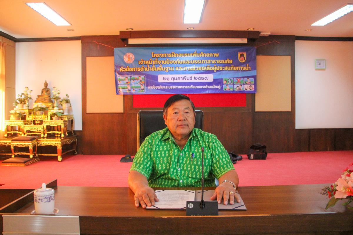 วันนี้ 21 กุมภาพันธ์ 2567 เวลา 9.00 น. งานป้องกันและบรรเทาสาธารณภัย จัดโครงการฝึกอบรมเพิ่มศักยภาพเจ้าหน้าที่งานป้องกันและบรรเทาสาธารณภัย หัวข้อการดำน้ำขั้นพื้นฐานและการช่วยเหลือผู้ประสบภัยทางน้ำ