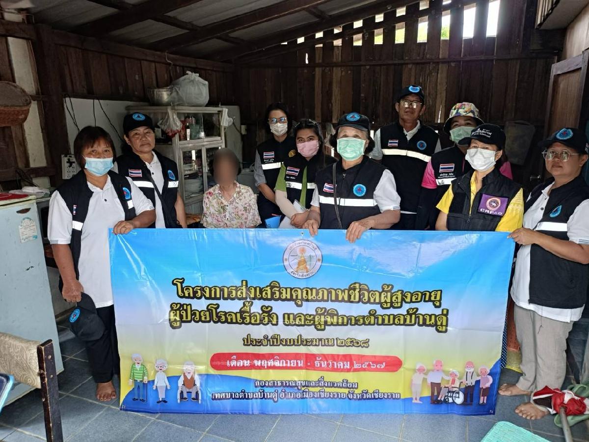 วันนี้ 22 พฤศจิกายน 2567 กองสาธารณสุขและสิ่งแวดล้อมเทศบาลตำบลบ้านดู่ ได้ออกเยี่ยมบ้านผู้ป่วยเรื้อรัง ผู้สูงอายุ และผู้พิการ หมู่ที่ 8 ตามโครงการส่งเสริมคุณภาพชีวิตผู้สูงอายุ ผู้ป่วยเรื้อรัง และผู้พิก