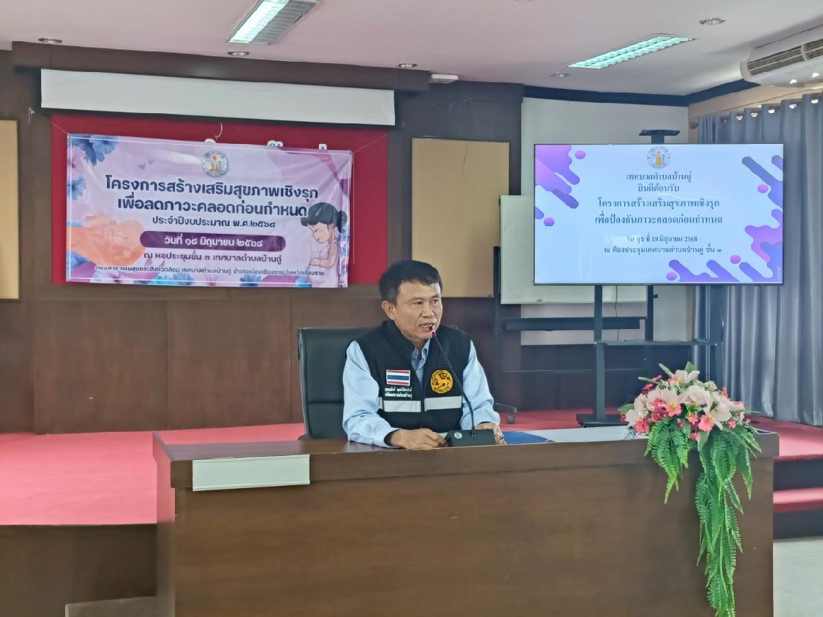 วันนี้ 18 มิถุนายน 2568 เวลา 09.00 น. กองสาธารณสุขและสิ่งแวดล้อมเทศบาลตำบลบ้านดู่ดำเนินการจัดโครงการสร้างเสริมสุขภาพเชิงรุกเพื่อลดภาวะคลอดก่อนกำหนด ประจำปีงบประมาณ 2568