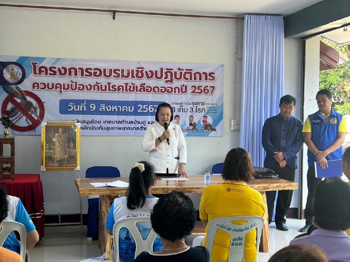 วันนี้ 9 สิงหาคม 2567 เวลา 10.00 น. นางพีระพรรณ ศิริกุล รองนายกเทศมนตรีตำบลบ้านดู่ ให้เกียรติเป็นประธานเปิดโครงการอบรมเชิงปฏิบัติการควบคุมป้องกันโรคไข้เลือดออก ปี 2567