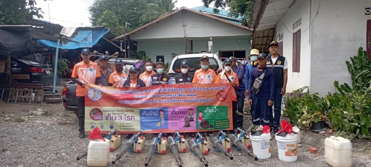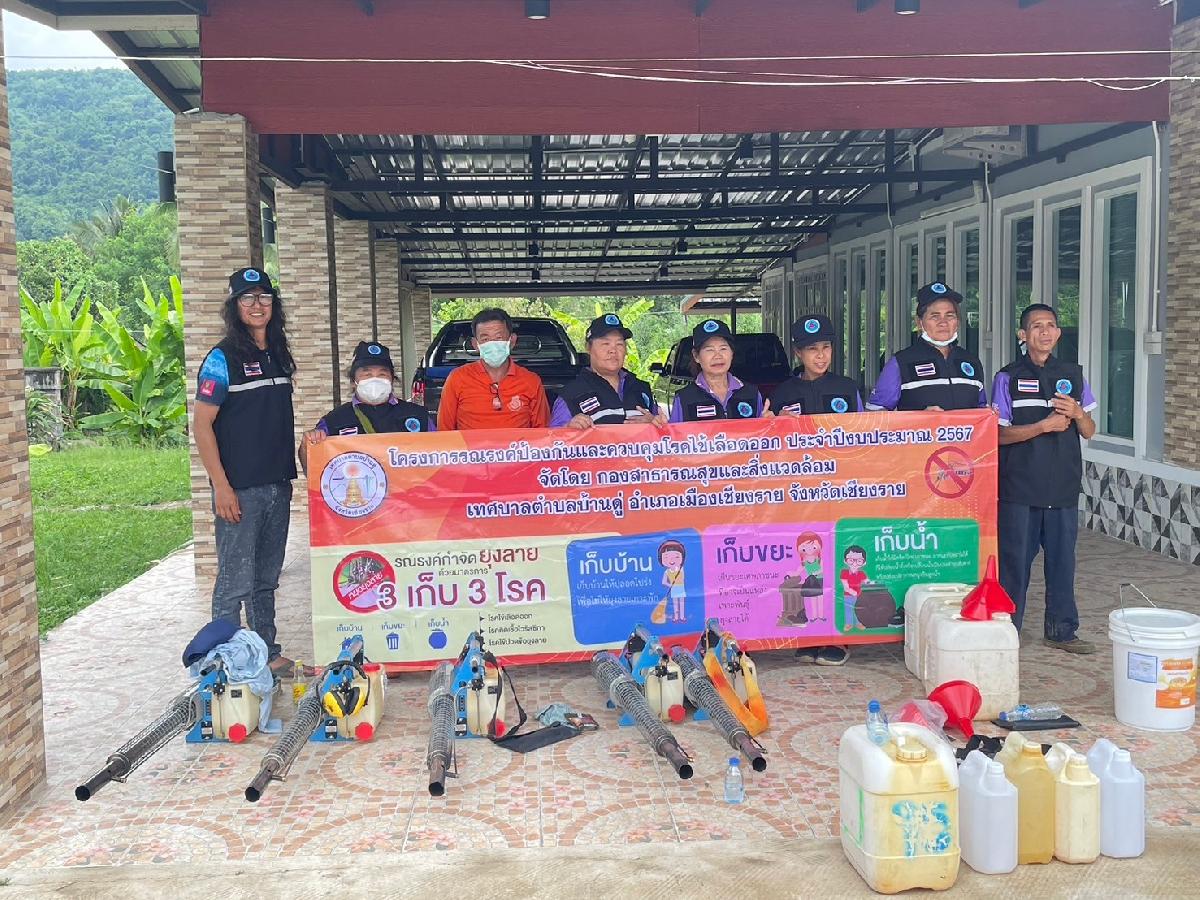 กองสาธารณสุขและสิ่งแวดล้อมเทศบาลตำบลบ้านดู่ร่วมกับ อสม. และผู้นำชุมชนหมู่9 ได้ออกดำเนินการสำรวจและกำจัดแหล่งเพาะพันธุ์ลูกน้ำยุงลายและพ่นหมอกควันเพื่อป้องกันการแพร่ระบาดและควบคุมโรคไข้เลือดออกภายในพื้