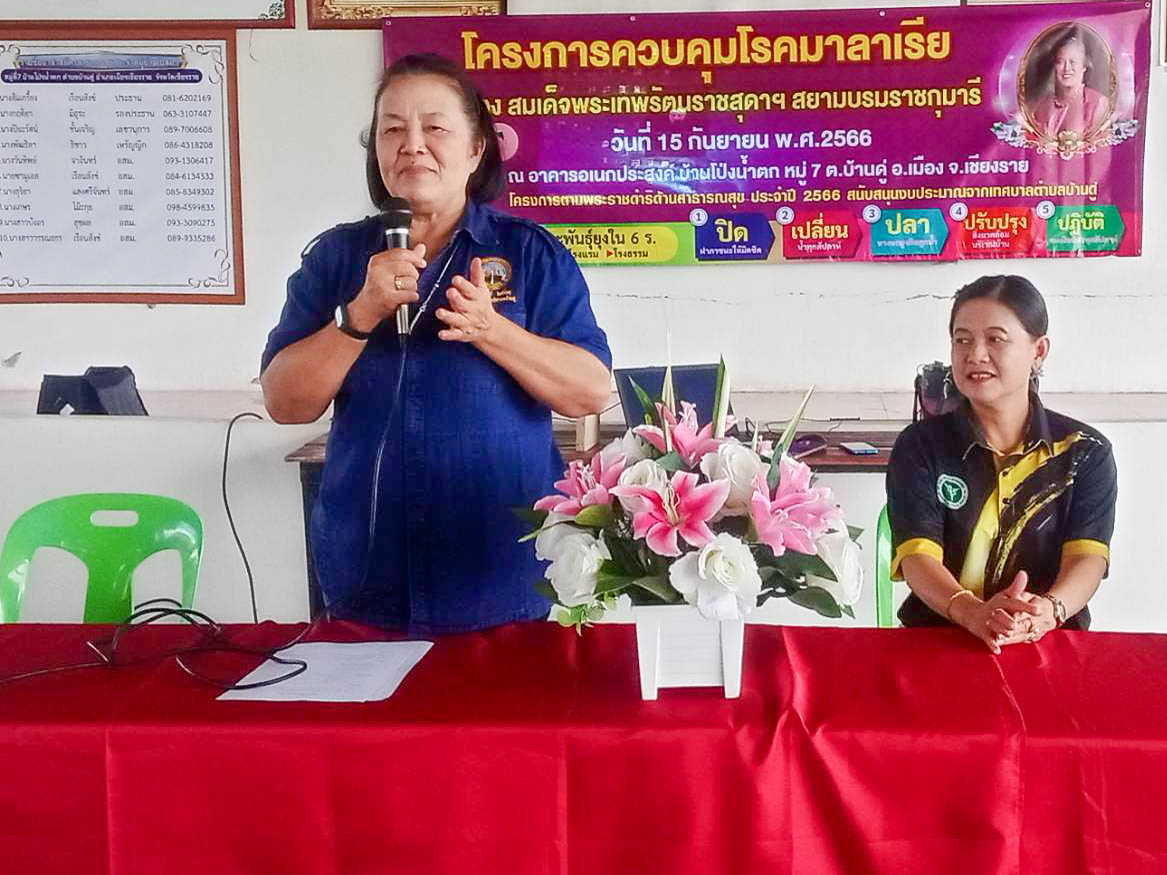 15 ก.ย. 66 รองนายกเทศมนตรีตำบลบ้านดู่ เป็นประธานเปิดโครงการควบคุมโรคมาลาเรีย โครงการตามพระราชดำริด้านสาธารณสุข ของสมเด็จพระเทพรัตนราชสุดาฯ สยามบรมราชกุมารี ประจำปี 2566