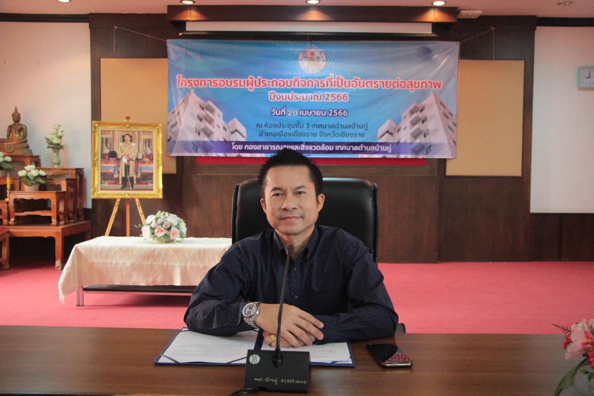 วันนี้ 20 เมษายน 2566 กองสาธารณสุขฯ เทศบาลตำบลบ้านดู่ ได้ดำเนินการจัดโครงการอบรมผู้ประกอบกิจการที่เป็นอันตรายต่อสุขภาพ ปีงบประมาณ พ.ศ.2566
