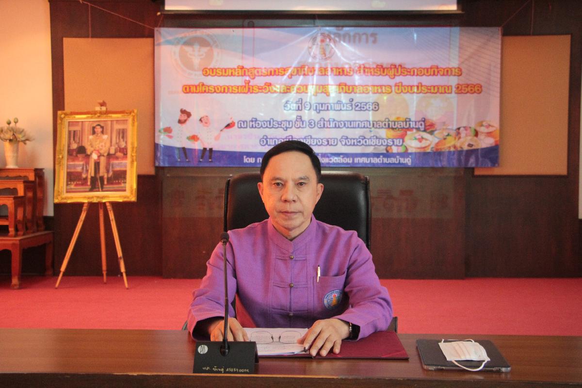 วันที่ 9 กุมภาพันธ์ 2566 อบรมหลักสูตรการสุขาภิบาลอาหาร สำหรับผู้ประกอบกิจการ ตามโครงการเฝ้าระวังและควบคุมสุขาภิบาลอาหาร ปีงบประมาณ 2566 ณ ห้องประชุมเทศบาล ชั้น 3 สำนักงานเทศบาลตำบลบ้านดู่