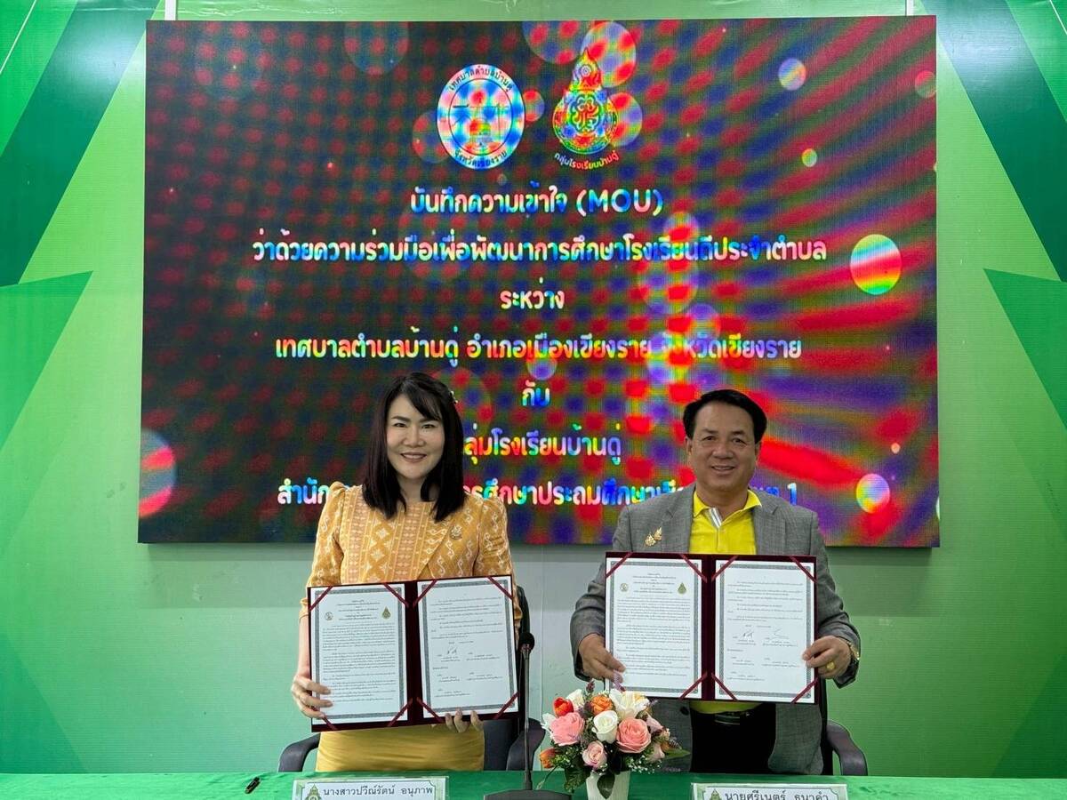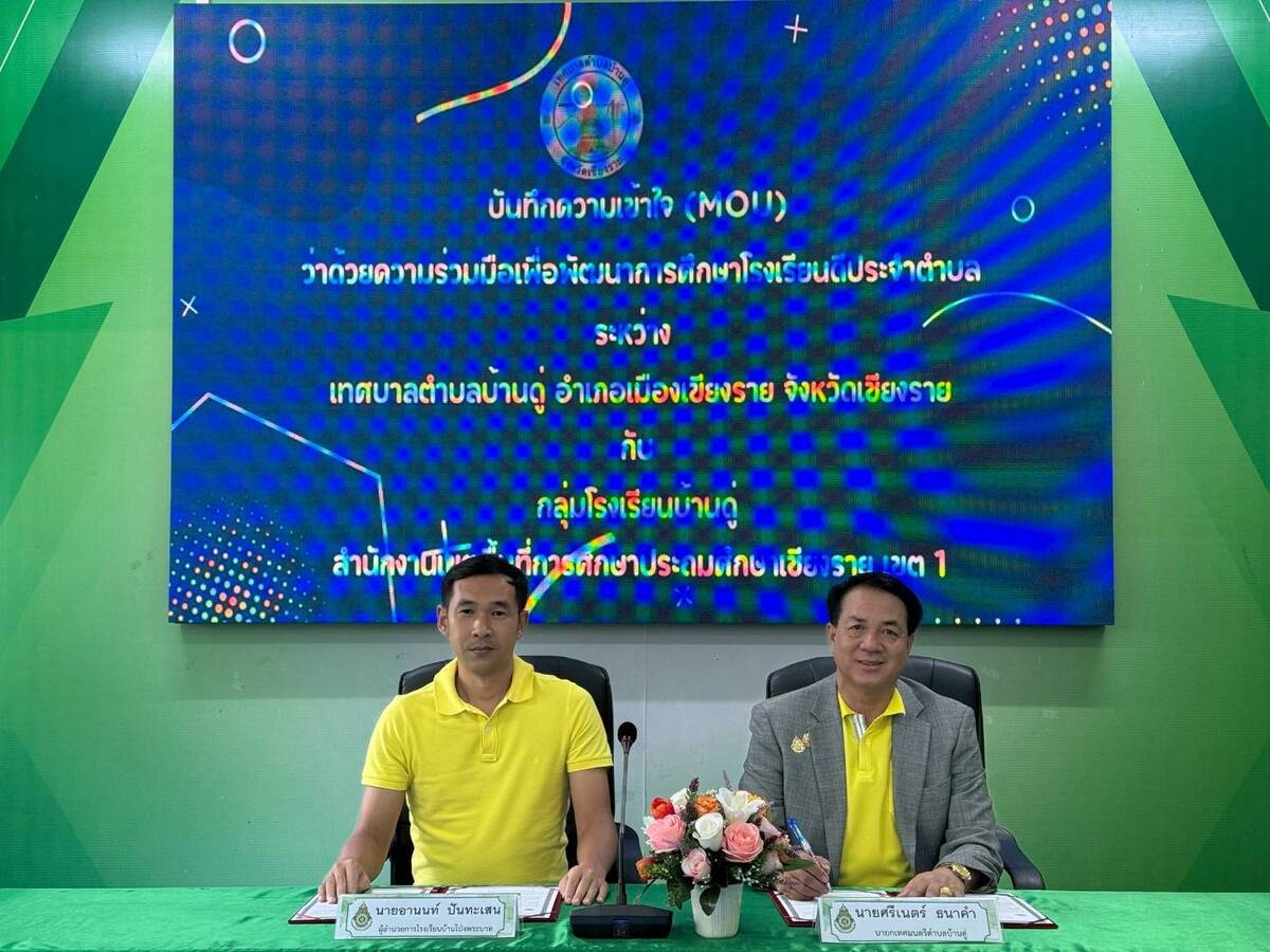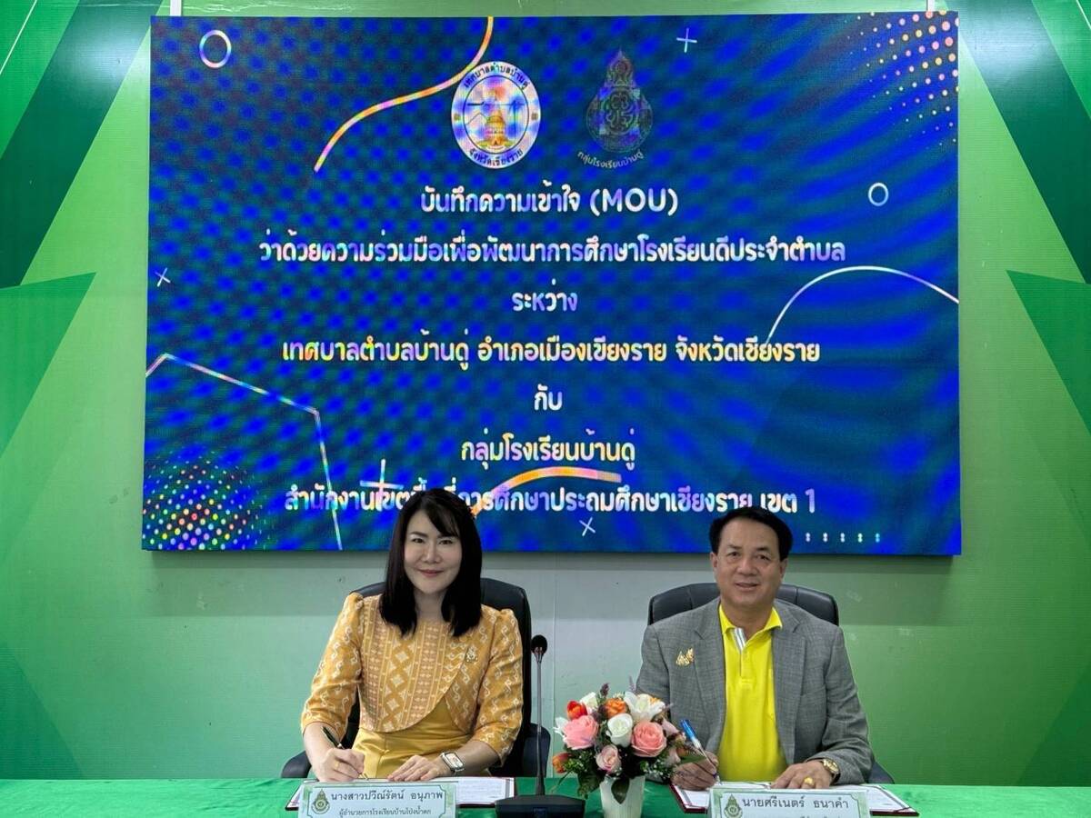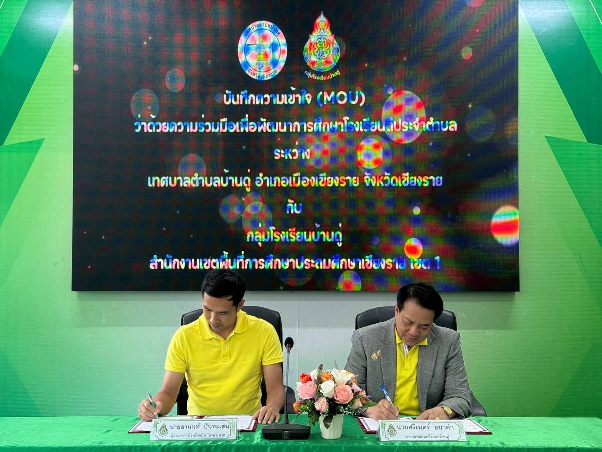 31 กรกฎาคม 2568 นายศรีเนตร์ ธนาคำ นายกเทศมนตรีตำบลบ้านดู่ ร่วมลงนามบันทึกความเข้าใจ (MOU) ว่าด้วยความร่วมมือเพื่อพัฒนาการศึกษาโรงเรียนดีประจำตำบล ร่วมกับกลุ่มโรงเรียนบ้านดู่ สำนักงานเขตพื้นที่การศึกษาประถมศึกษาเชียงราย เขต 1 ประกอบด้วย โรงเรียนบ้านดู่(สหราษฎร์พัฒนาคาร), โรงเรียนบ้านป่าสักไก่, โรงเรียนบ้านโป่งพระบาท, โรงเรียนบ้านขัวแคร่ และโรงเรียนบ้านโป่งน้ำตก เพื่อส่งเสริม และยกระดับคุณภาพการศึกฆษาของโรงเรียนดีประจำตำบล ณ ห้องประชุมดอกประดู่ โรงเรียนบ้านดู่(สหราษฎร์พัฒนาคาร) ตำบลบ่านดู่ อำเภอเมืองเชียงราย จังหวัดเชียงราย