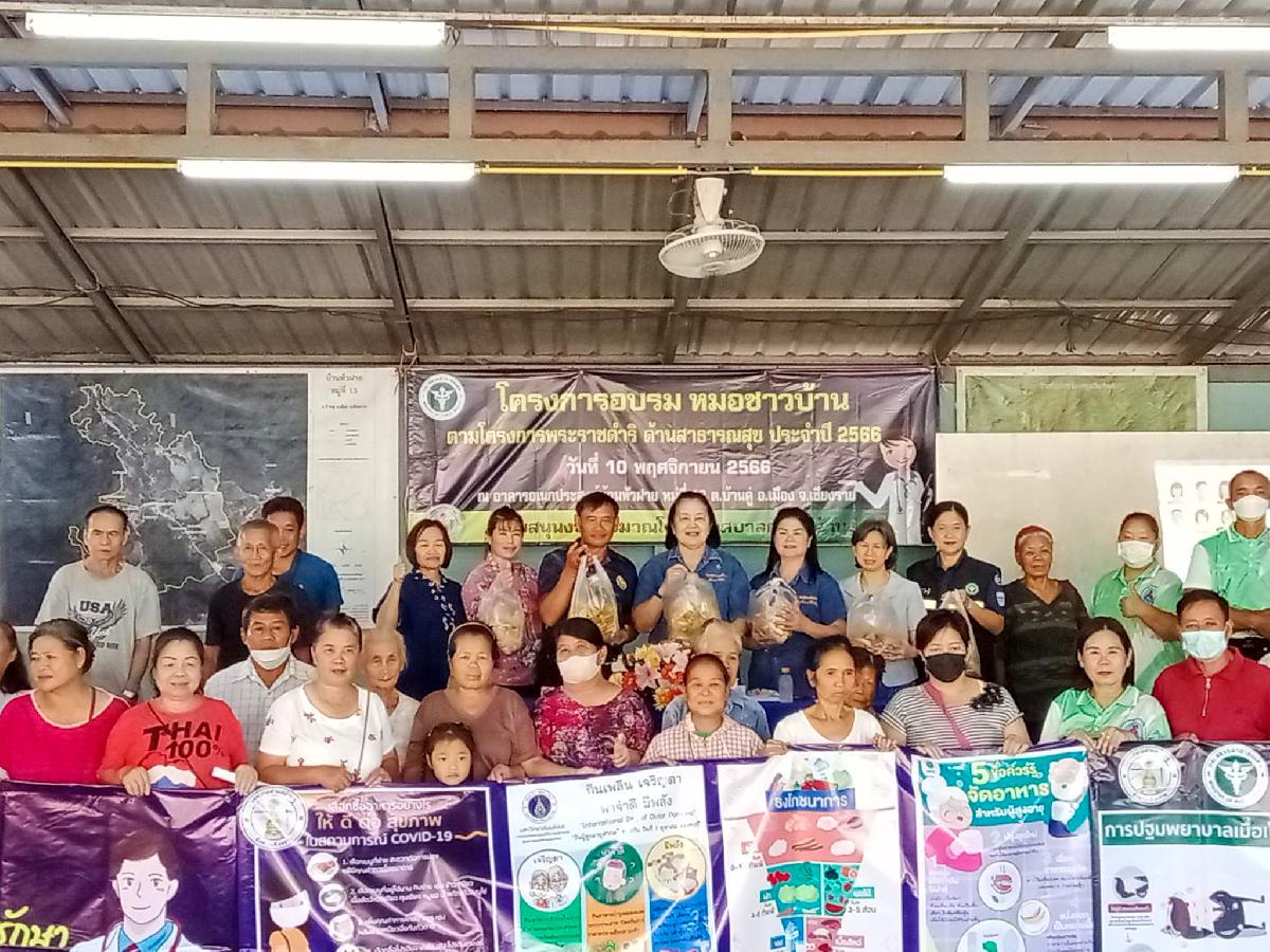 วันนี้ 10 พฤศจิกายน 2566 นางพีระพรรณ ศิริกุล รองนายกเทศมนตรีตำบลบ้านดู่ ให้เกียรติเป็นประธานเปิดโครงการอบรมหมอชาวบ้าน ตามโครงการพระราชดำริด้านสาธารณสุข ประจำปี 2566 ซึ่งได้รับการสนับสนุนงบประมาณจากเทศบาลตำบลบ้านดู่ ณ ศาลาอเนกประสงค์บ้านหัวฝาย หมู่ที่ 13 ตำบลบ้านดู่ อำเภอเมืองเชียงราย จังหวัดเชียงราย โดยมีนางสาวนิรชา เรือนคำ ที่ปรึกษานายกเทศมนตรีตำบลบ้านดู่ เข้าร่วมพิธีเปิดโครงการในครั้งนี้