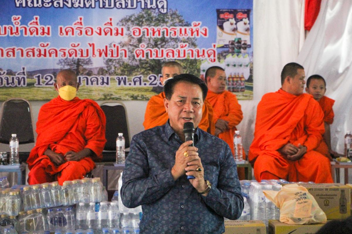 วันนี้ 12 มีนาคม 2567 นายพัฒนพงษ์ โพธิ์เกตุ นายกเทศมนตรีตำบลบ้านดู่ รับมอบน้ำดื่ม เครื่องดื่ม อาหารแห้ง จากหน่วยอบรมประชาชนตำบลบ้านดู่ เเละคณะสงฆ์ตำบลบ้านดู่ เพื่อมอบให้กับอาสาสมัครดับไฟป่า ตำบลบ้านดู่ ณ โรงเรียนบ้านโป่งพระบาท ตำบลบ้านดู่ อำเภอเมืองเชียงราย จังหวัดเชียงราย