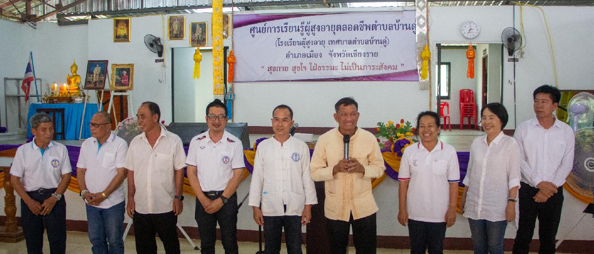 วันนี้ 3 พฤษภาคม 2567 เวลา 13.00 น. งานพัฒนาชุมชนเทศบาลตำบลบ้านดู่ และนักเรียนโรงเรียนผู้สูงอายุเทศบาลตำบลบ้านดู่ ต้อนรับคณะศึกษาดูงานจากเทศบาลตำบลป่าตันนาครัว อำเภอแม่ทัด จังหวัดลำปาง ตามโครงการพัฒนาศักยภาพผู้สูงอายุ ประจำปีงบประมาณ 2567 โดยมีวัตถุประสงค์เพื่อส่งเสริมให้ผู้สูงอายุได้รับการพัฒนาตนเอง และมีกิจกรรมที่ส่งเสริมคุณภาพชีวิตตลอดจนการส่งเสริมให้ผู้สูงอายุมีพฤติกรรมดูแลสุขภาพตนเอง และช่วยเหลือเกื้อกูลเพื่อนผู้สูงอายุ ณ ศูนย์การเรียนรู้ผู้สูงอายุตลอดชีพตำบลบ้านดู่ อำเภอเมืองเชียงราย จังหวัดเชียงราย