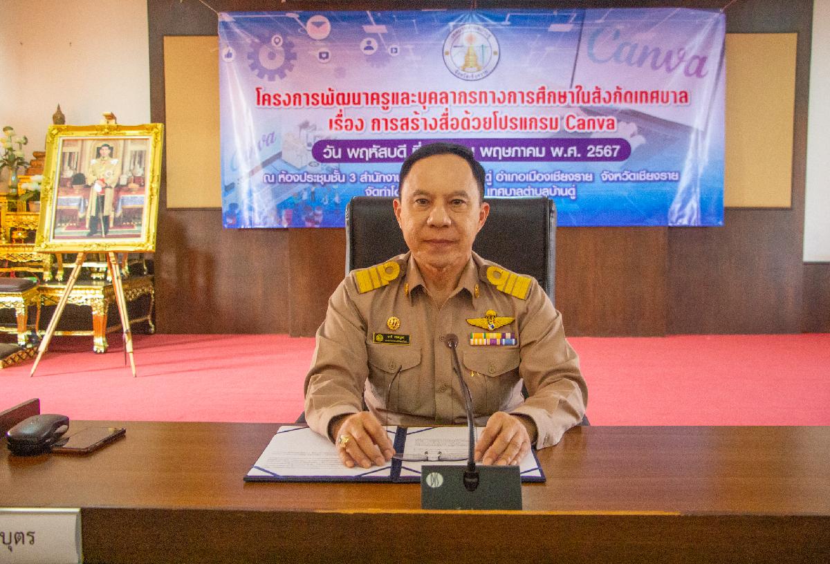 วันนี้ 9 พฤษภาคม 2567 เวลา 09.00 น เทศบาลตำบลบ้านดู่ นำโดยนายวาที ยอดบุตร รองนายกเทศมนตรีตำบลบ้านดู่ พร้อมด้วยพนักงานเทศบาลฯ ดำเนินการจัดโครงการพัฒนาครูและบุคลากรทางการศึกษาในสังกัดเทศบาลตำบลบ้านดู่ ประจำปีงบประมาณ 2567 ในหัวข้อเรื่อง การสร้างสื่อด้วยโปรแกรม canva ณ ห้องประชุมชั้น 3 สำนักงานเทศบาลตำบลบ้านดู่ อำเภอเมืองเชียงราย จังหวัดเชียงราย โดยได้รับความอนุเคราะห์วิทยากรจากอาจารย์โรงเรียนสาธิต มหาวิทยาลัยราชภัฏเชียงราย ในการให้ความรู้และฝึกอบรมในครั้งนี้