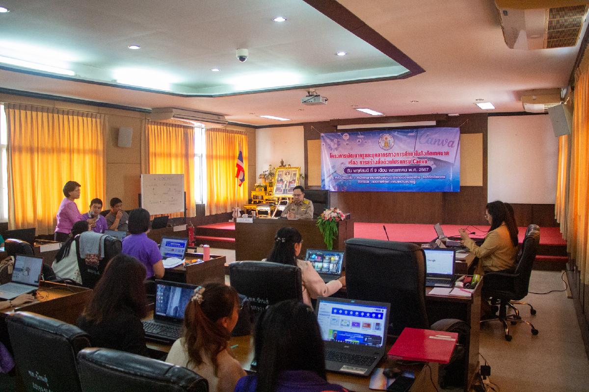 วันนี้ 9 พฤษภาคม 2567 เวลา 09.00 น เทศบาลตำบลบ้านดู่ดำเนินการ จัดโครงการพัฒนาครูและบุคลากรทางการศึกษาในสังกัดเทศบาลตำบลบ้านดู่ ประจำปีงบประมาณ 2567 ในหัวข้อเรื่อง การสร้างสื่อด้วยโปรแกรม canva