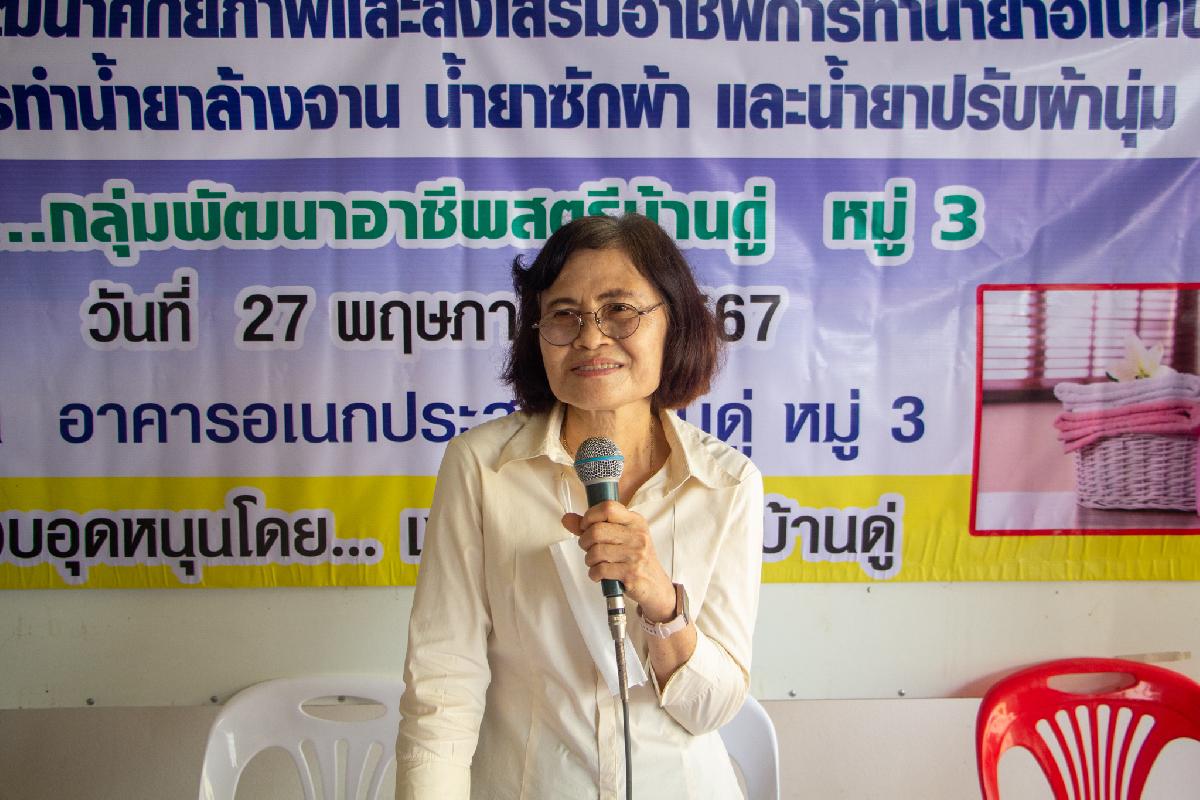 วันนี้ 27 พฤษภาคม 2567 รองนายกเทศมนตรีตำบลบ้านดู่ ให้เกียรติเป็นประธานเปิดโครงการอบรมการพัฒนาศักยภาพและส่งเสริมอาชีพการทำน้ำยาอเนกประสงค์ หลักสูตรการทำน้ำยาล้างจาน น้ำยาซักผ้า และน้ำยาปรับผ้านุ่ม