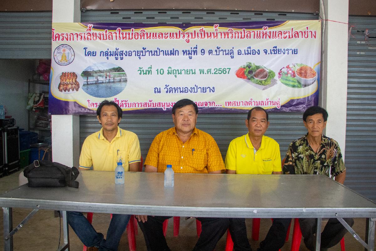 วันนี้ 10 มิถุนายน 2567 เวลา 09.00 น. นายพัฒนพงษ์ โพธิ์เกตุ นายกเทศมนตรีตำบลบ้านดู่ ให้เกียรติเป็นประธานเปิดโครงการเลี้ยงปลาในบ่อดินและแปรรูปเป็นน้ำพริกปลาแห้งและปลาย่าง จัดโดยกลุ่มผู้สูงอายุบ้านป่าแฝก ณ วัดป่าแฝกหนองป่ายาง และ อาคารอเนกประสงค์บ้านป่าแฝก หมู่ที่ 9 ตำบลบ้านดู่ อำเภอเมืองเชียงราย จังหวัดเชียงราย ซึ่งได้รับการสนับสนุนงบประมาณจาก เทศบาลตำบลบ้านดู่
