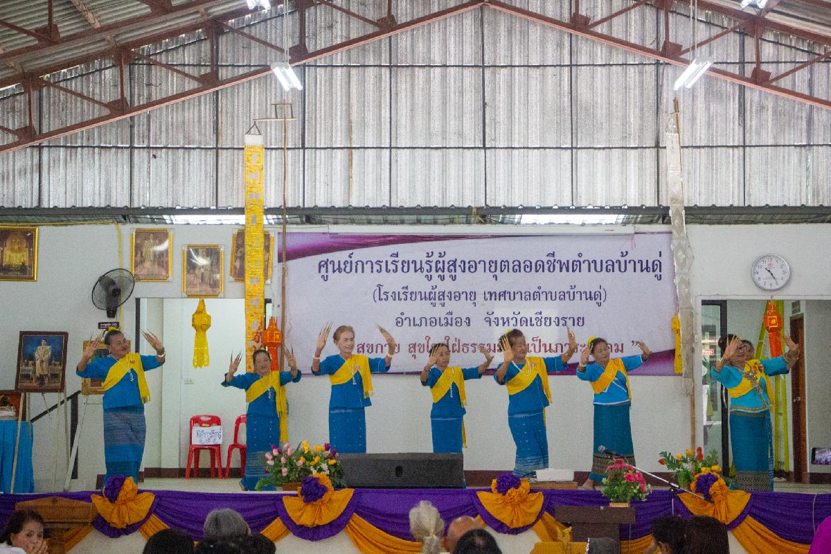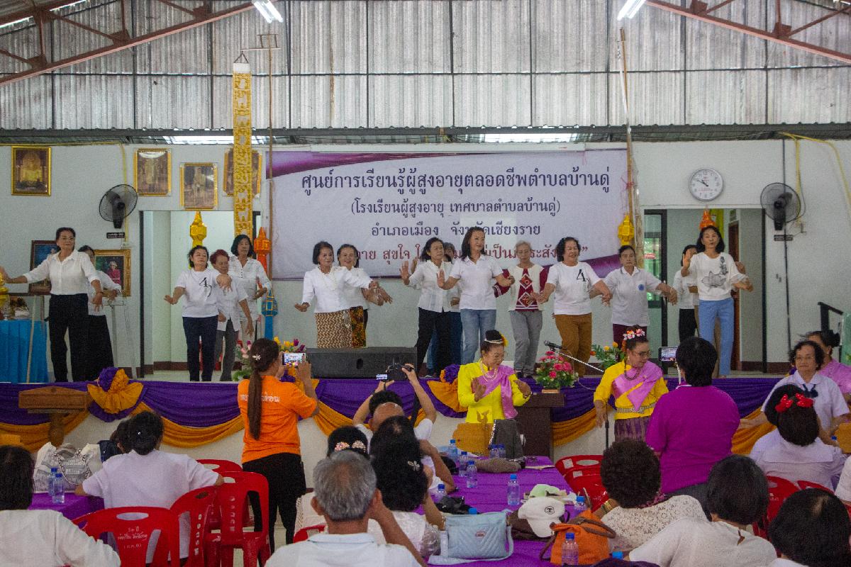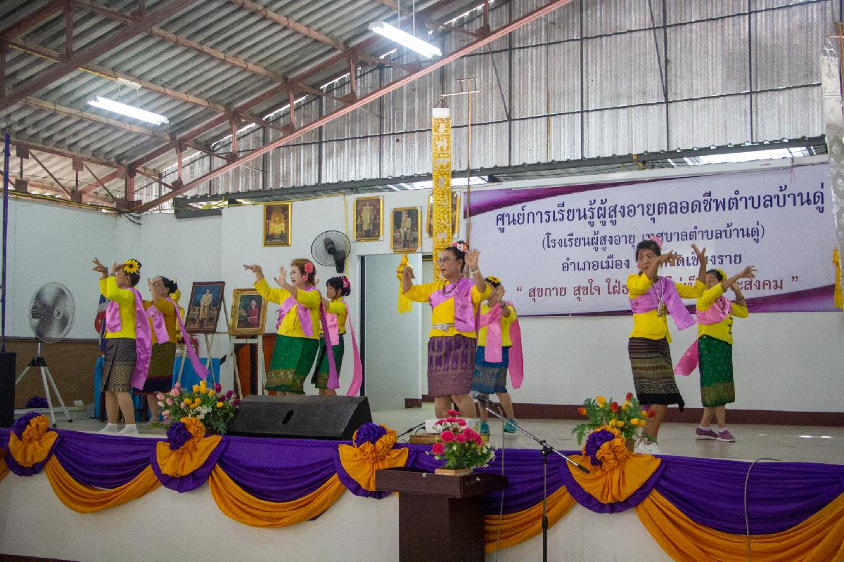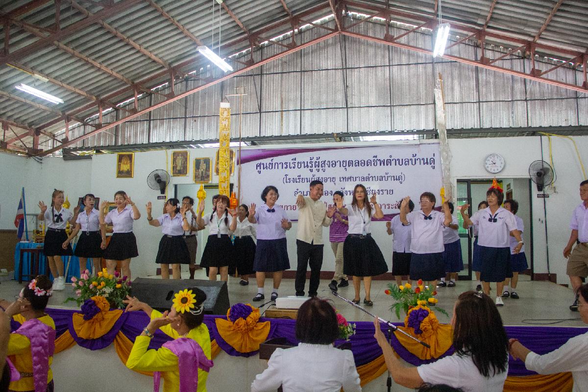 วันนี้ 20 มิถุนายน 2567 เวลา 10.00 น. เทศบาลตำบลบ้านดู่ นำโดยนายพิทยุตม์ แก้วประภา เลขานุการนายกเทศมนตรีตำบลบ้านดู่ พร้อมด้วยว่าที่ร้อยตรีจำรอง อ่อนพุทธา ปลัดเทศบาลตำบลบ้านดู่ พนักงานเทศบาล และนักเรียนโรงเรียนผู้สูงอายุเทศบาลตำบลบ้านดู่ ต้อนรับคณะศึกษาดูงานจากเทศบาลตำบลฟ้าฮ่าม อำเภอเมืองเชียงใหม่ จังหวัดเชียงใหม่ ตามโครงการพัฒนาศักยภาพผู้สูงอายุและเตรียมความพร้อมสู่วัยสูงอายุ ประจำปีงบประมาณ พ.ศ.2567 เพื่อให้ผู้สูงอายุและผู้จะเข้าสู่วัยสูงอายุได้รับความรู้รอบตัวและและได้รับความรู้ความเข้าใจเกี่ยวกับการดูแลสุขภาพร่างกายและจิตใจ ณ ศูนย์การเรียนรู้ผู้สูงอายุตลอดชีพตำบลบ้านดู่ อำเภอเมืองเชียงราย จังหวัดเชียงราย