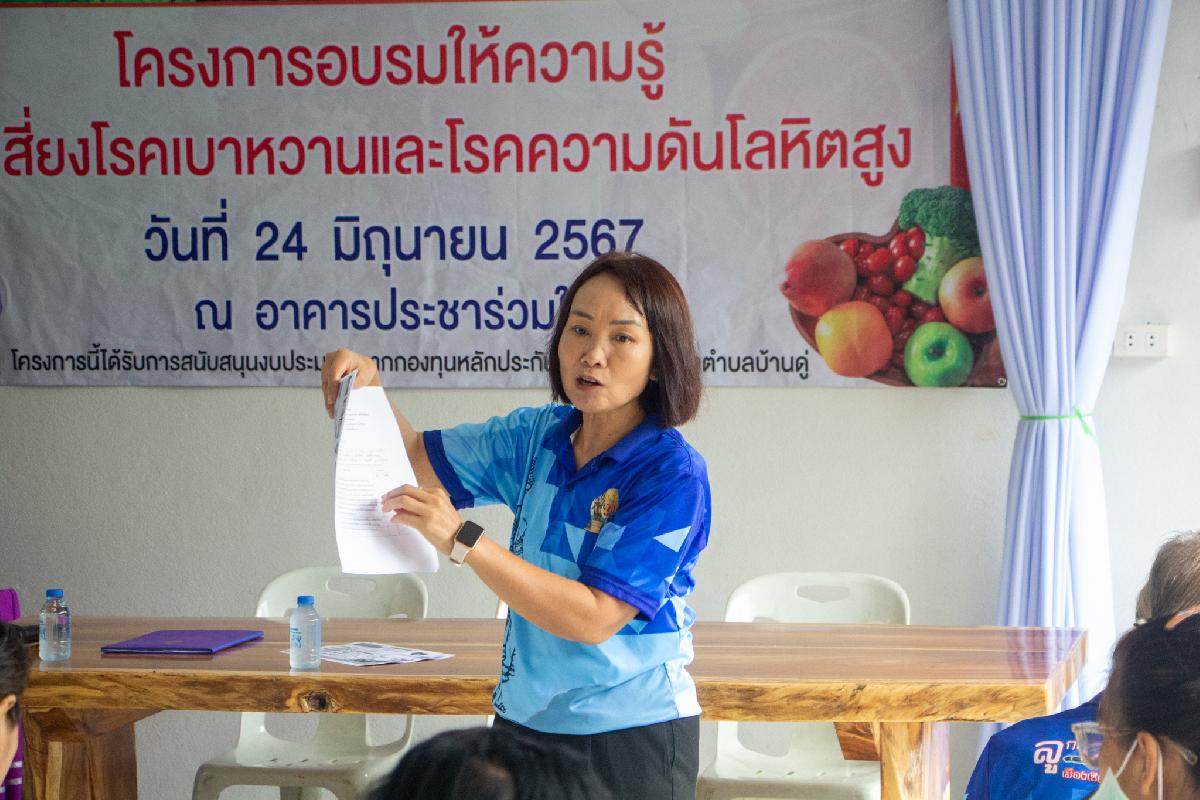 วันนี้ 24 มิถุนายน 2567 เวลา 09.00 น. นายวาที ยอดบุตร รองนายกเทศมนตรีตำบลบ้านดู่ ให้เกียรติเป็นประธานเปิดโครงการ อบรมให้ความรู้กลุ่มเสี่ยงโรคเบาหวานและโรคความดันโลหิตสูง หมู่ 17 ณ อาคารประชาร่วมใจ บ้านสันปอแตงหมู่ที่ 20 ตำบลบ้านดู่ อำเภอเมืองเชียงราย จังหวัดเชียงราย โดยโครงการนี้ได้รับการสนับสนุนงบประมาณจากกองทุนหลักประกันสุขภาพ เทศบาลตำบลบ้านดู่