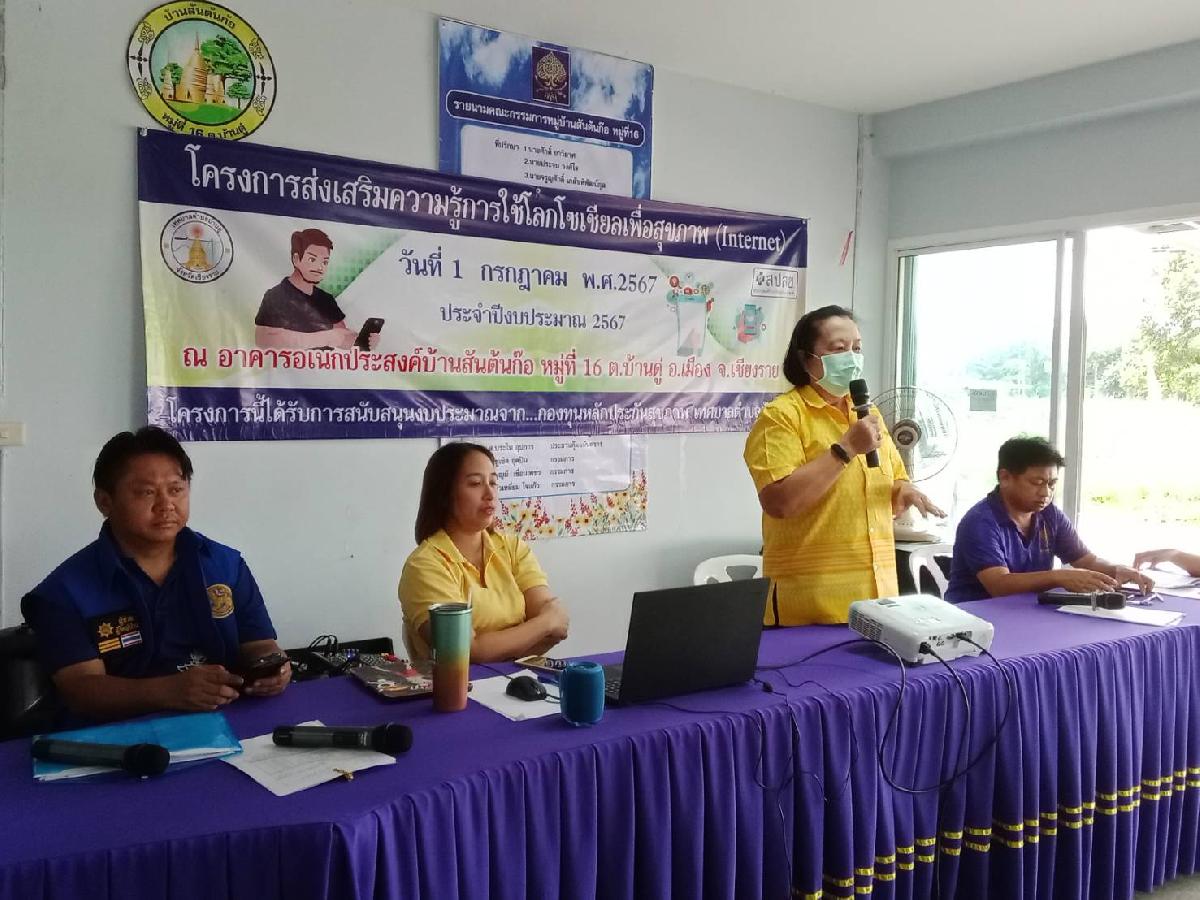 1 ก.ค. 67 รองนายกเทศมนตรีตำบลบ้านดู่ เปิดโครงการส่งเสริมความรู้การใช้โลกโซเชียลเพื่อสุขภาพ (Internet) บ้านสันต้นก๊อ หมู่ที่ 16