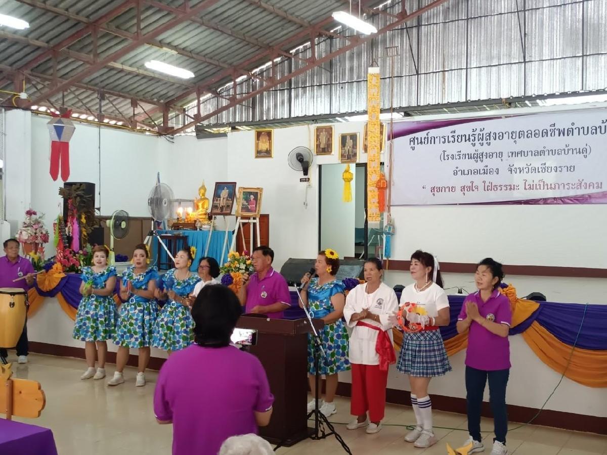 15 สิงหาคม 2567 เวลา 13.00 น. นางพีระพรรณ ศิริกุล รองนายกเทศมนตรีตำบลบ้านดู่ ให้เกียรติ ต้อนรับคณะศึกษาดูงานจาก เทศบาลเมืองสุโขทัยธานี อำเภอเมือง จังหวัดสุโขทัย ตามโครงการฝึกอบรมและศึกษาดูงานเพื่อพัฒนาผู้สูงอายุ ประจำปี 2567 เพื่อส่งเสริมให้ผู้สูงอายุได้มีความรู้ความเข้าใจ และแลกเปลี่ยนประสบการณ์ในด้านต่างๆ เพื่อนำความรู้ที่ได้รับไปปรับใช้ในชีวิตประจำวัน ซึ่งจะส่งผลดีต่อสุขภาพและสุขภาพจิตของผู้สูงอายุ ทั้งด้านร่างกาย จิตใจและสิ่งแวดล้อม ณ ศูนย์การเรียนรู้ผู้สูงอายุตลอดชีพตำบลบ้านดู่ อำเภอเมืองเชียงราย จังหวัดเชียงราย