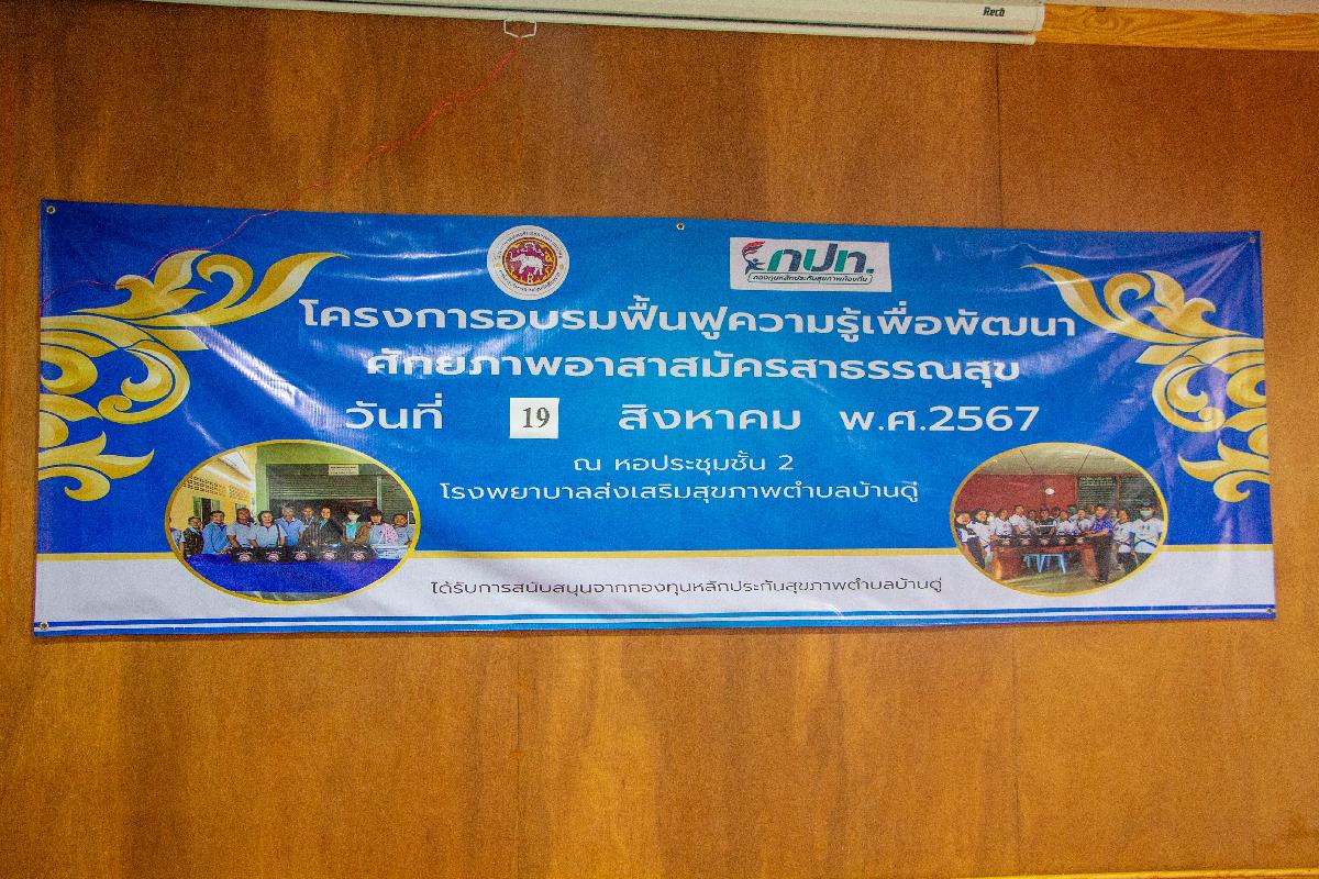 วันนี้ 19 สิงหาคม 2567 เวลา 09.00 น. นายพัฒนพงษ์ โพธิ์เกตุ นายกเทศมนตรีตำบลบ้านดู่ ให้เกียรติเป็นประธานเปิดโครงการอบรมฟื้นฟูความรู้เพื่อพัฒนาศักยภาพอาสาสมัครสาธารณสุข ณ ห้องประชุมชั้น 2 โรงพยาบาลส่งเสริมสุขภาพตำบลบ้านดู่ อำเภอเมืองเชียงราย จังหวัดเชียงราย โดยได้รับการสนับสนุนจากกองทุนหลักประกันสุขภาพตำบลบ้านดู่