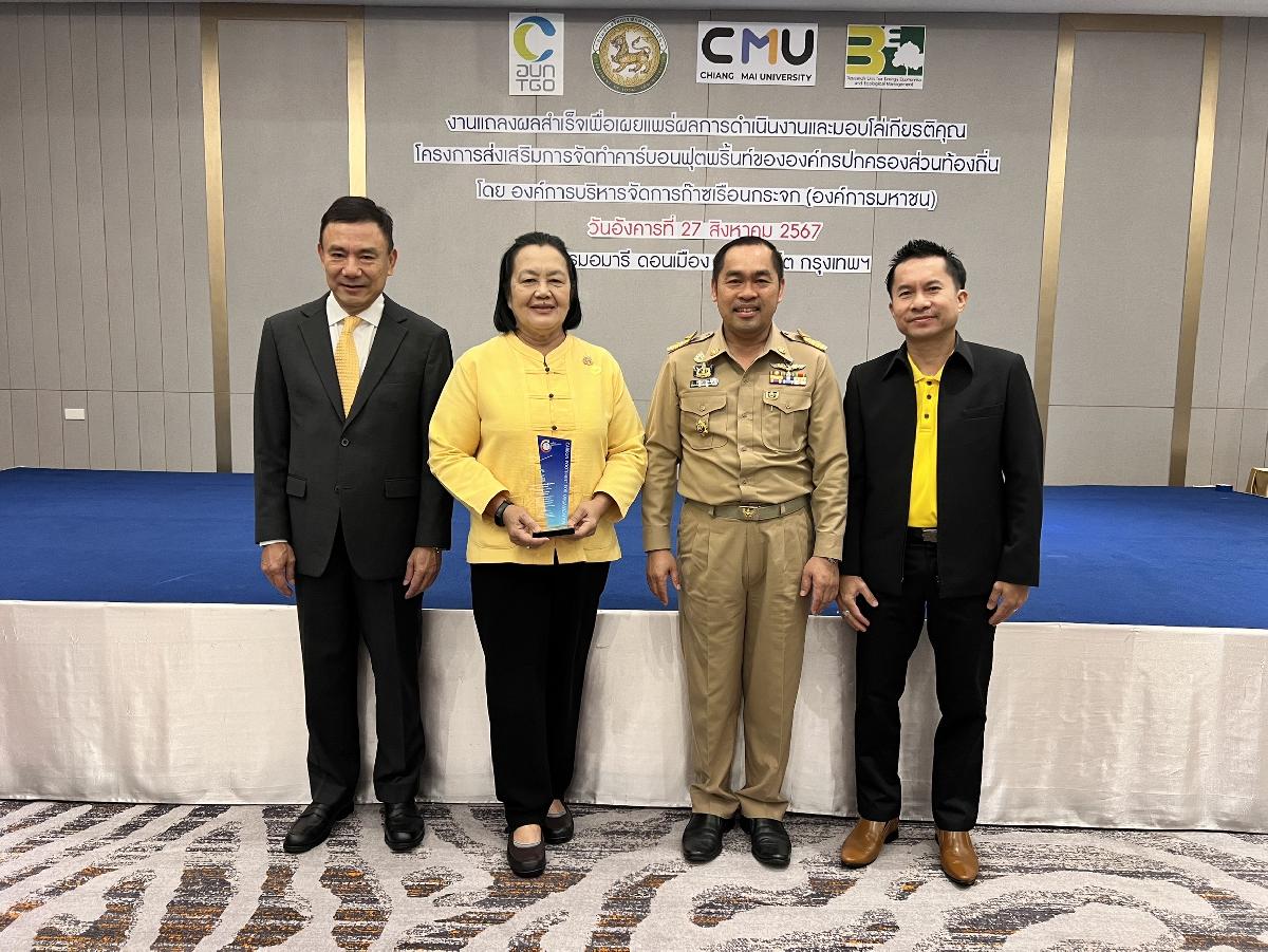 27 ส.ค. 67 รองนายกเทศมนตรีตำบลบ้านดู่ เข้ารับมอบโล่เกียรติคุณ โครงการส่งเสริมการจัดทำคาร์บอนฟุตพริ้นท์ขององค์กรปกครองส่วนท้องถิ่น ปีงบประมาณ พ.ศ. 2567