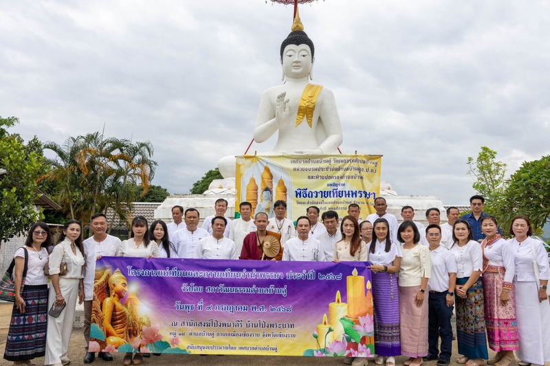 วันที่ 9 กรกฎาคม 2568 เวลา 13.30 น. เทศบาลตำบลบ้านดู่ นำโดยนายศรีเนตร์ ธนาคำ นายกเทศมนตรีตำบลบ้านดู่ พร้อมด้วยคณะผู้บริหาร สมาชิกสภาเทศบาล พนักงานเทศบาล ร่วมกับสภาวัฒนธรรมตำบลบ้านดู่ และฝ่ายปกครองตำบลบ้านดู่ ดำเนินโครงการแห่เทียนและถวายเทียนจำนำพรรษา ประจำปี 2568 เพื่อถวายเทียนพรรษาเป็นพุทธบูชา ตามประเพณีที่ปฏิบัติสืบต่อมาแต่โบราณ ให้แก่วัดและสำนักสงฆ์ในพื้นที่ตำบลบ้านดู่ ณ สำนักสงฆ์โป่งพนาคีรี บ้านโป่งพระบาท หมู่ที่ 18 ตำบลบ้านดู่ อำเภอเมืองเชียงราย จังหวัดเชียงราย