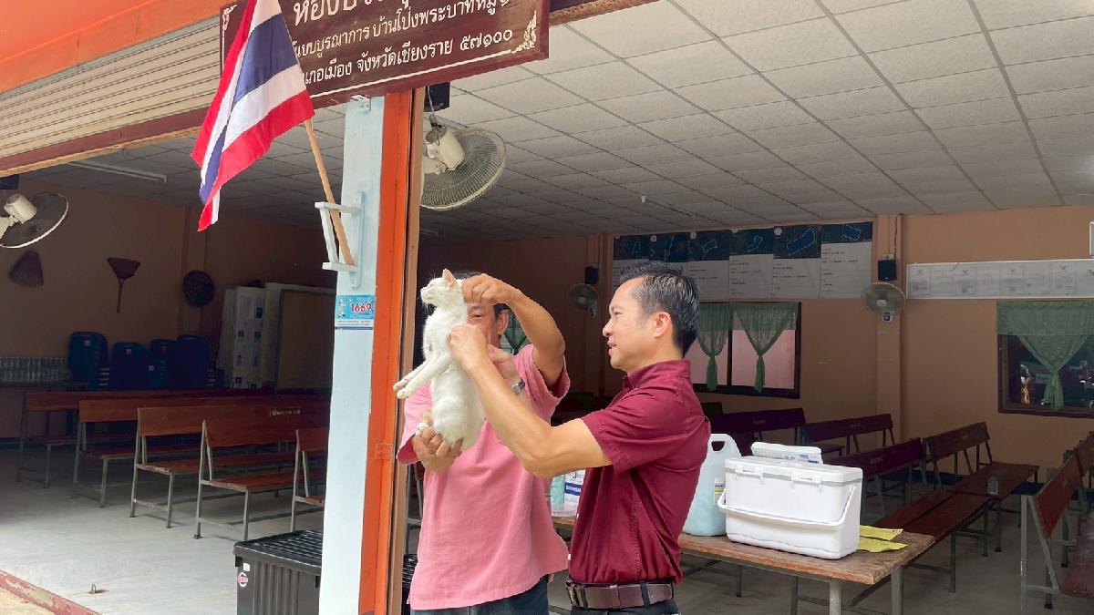 วันนี้ 16 พฤษภาคม 2568 เวลา 9.00 น กองสาธารณสุขและสิ่งแวดล้อม เทศบาลตำบลบ้านดู่ ได้ออกดำเนินการสำรวจขึ้นทะเบียนและฉีดวัคซีนป้องกันโรคพิษสุนัขบ้าแก่สุนัขและแมวในพื้นที่ตำบลบ้านดู่ประจำปีงบประมาณ 2568 ครั้งที่ 1 ณ อาคารอเนกประสงค์ หมู่ที่ 18 บ้านโป่งพระบาท ตำบลบ้านดู่ อำเภอเมืองเชียงราย จังหวัดเชียงราย