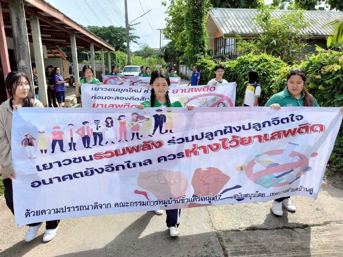 วันนี้ 23 พฤศภาคม 2568 กองสาธารณสุขและสิ่งแวดล้อมเทศบาลตำบลบ้านดู่ได้เข้าร่วม โครงการรณรงค์และแก้ไขปัญหายาเสพติด TO BE NUMBER ONE (ศูนย์เพื่อนใจวัยรุ่นในชุมชน/หมู่บ้าน) โครงการพระราชดำริด้านสาธารณสุข ทูลกระหม่อมหญิงอุบลรัตน์ราชกัญญา สิริวัฒนาพรรณวดี ณ อาคารอเนกประสงค์บ้านขัวแคร่ หมู่ที่ 17 ตำบลบ้านดู่ อำเภอเมืองเชียงราย จังหวัดเชียงราย