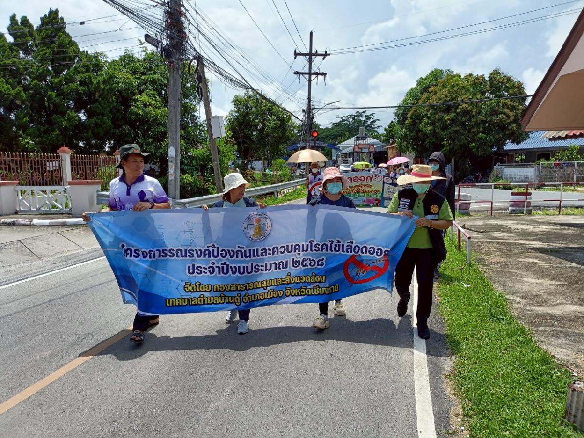 วันนี้ 13 มิถุนายน 2567 เวลา 13.00 น. กองสาธารณสุขและสิ่งแวดล้อมเทศบาลตำบลบ้านดู่ ร่วมกับ ผู้นำชุมชน และ อสม. หมู่ที่ 4 ได้ออกรณรงค์และประชาสัมพันธ์ป้องกันโรคไข้เลือดออก ณ บ้านสันติหมู่ที่ 4 ตำบลบ้านดู่ อำเภอเมืองเชียงราย จังหวัดเชียงราย