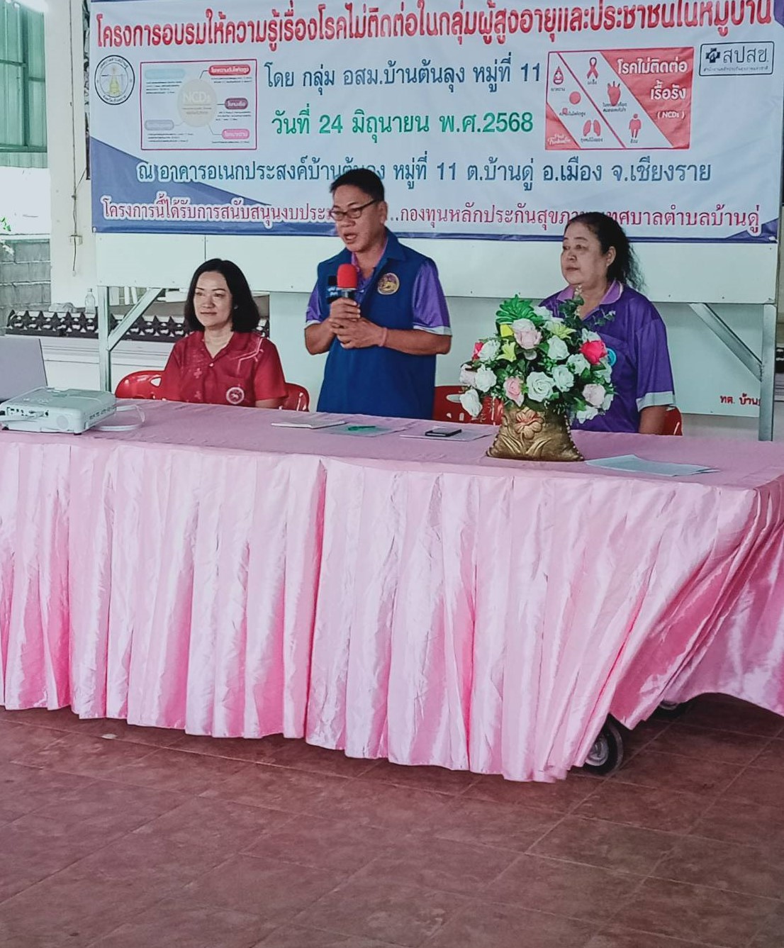 เมื่อวันที่ 24 มิถุนายน 2568 กองสาธารณสุขและสิ่งแวดล้อมเทศบาลตำบลบ้านดู่ ได้เข้าประเมินโครงการอบรมให้ความรู้เรื่องโรคไม่ติดต่อในกลุ่มผู้สูงอายุและประชาชนในหมู่บ้าน ณ อาคารอเนกประสงค์บ้านต้นลุง หมู่ที่ 11 ตำบลบ้านดู่ อำเภอเมืองเชียงราย จังหวัดเชียงราย โดยโครงการนี้ได้รับการสนับสนุนงบประมาณจาก กองทุนหลักประกันสุขภาพ เทศบาลตำบลบ้านดู่