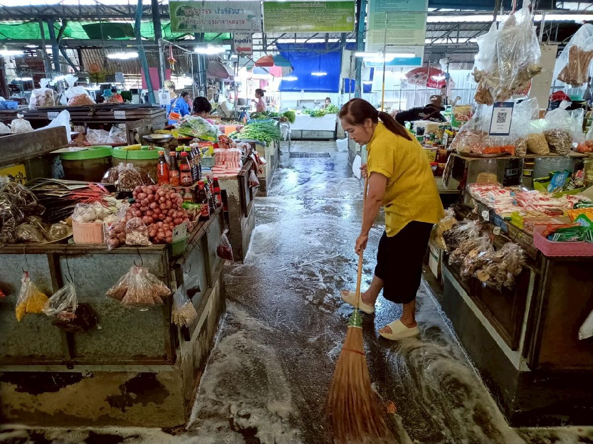 วันนี้ 3 กรกฎาคม 2568 กองสาธารณสุขและสิ่งแวดล้อม ร่วมกับงานป้องกันและบรรเทาสาธารณภัย เทศบาลตำบลบ้านดู่ และพ่อค้าแม่ค้าในตลาดสดเทศบาลตำบลบ้านดู่ได้ดำเนินการทำความสะอาดตลาดสดเทศบาลตำบลบ้านดู่