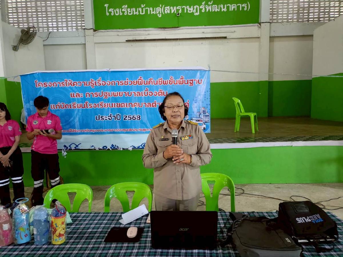 วันนี้ 18 สิงหาคม 2568 นางเพ็ญรำไพ โพธิ์เกตุ รองนายกเทศมนตรีตำบลบ้านดู่ ให้เกียรติเป็นประธานเปิดโครงการให้ความรู้เรื่องการช่วยฟื้นคืนชีพขั้นพื้นฐาน และปฐมพยาบาลเบื้องต้นแก่นักเรียนในเขตเทศบาลตำบลบ้านด