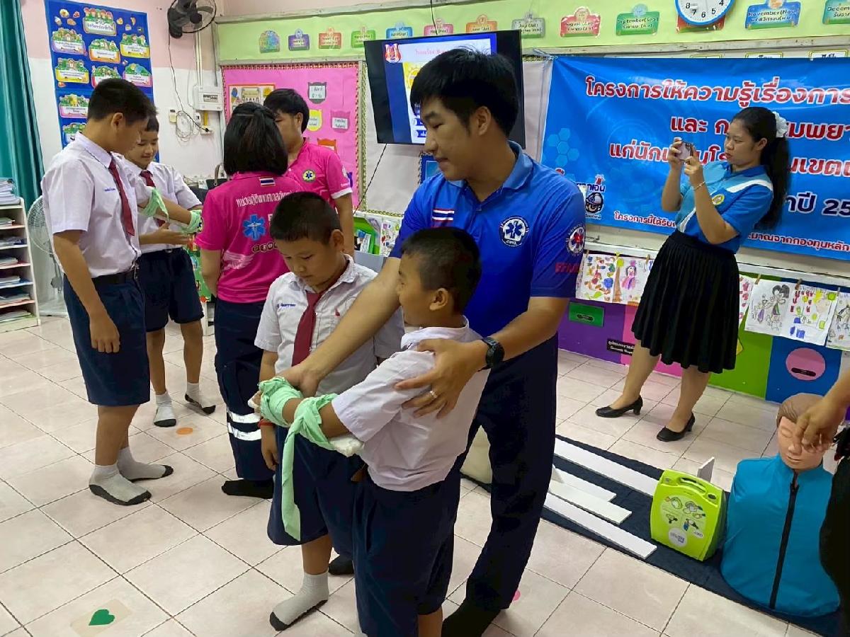 วันนี้ 19 สิงหาคม 2568 ชมรมกู้ชีพเทศบาลตำบลบ้านดู่ ดำเนินการจัดโครงการให้ความรู้เรื่องการช่วยฟื้นคืนชีพขั้นพื้นฐาน และปฐมพยาบาลเบื้องต้นแก่นักเรียนในเขตเทศบาลตำบลบ้านดู่ ณ โรงเรียนบ้านโป่งพระบาท ตำบลบ้านดู่ อำเภอเมืองเชียงราย จังหวัดเชียงราย โดยโครงการนี้ได้รับการสนับสนุนงบประมาณจาก กองทุนหลักประกันสุขภาพ เทศบาลตำบลบ้านดู่