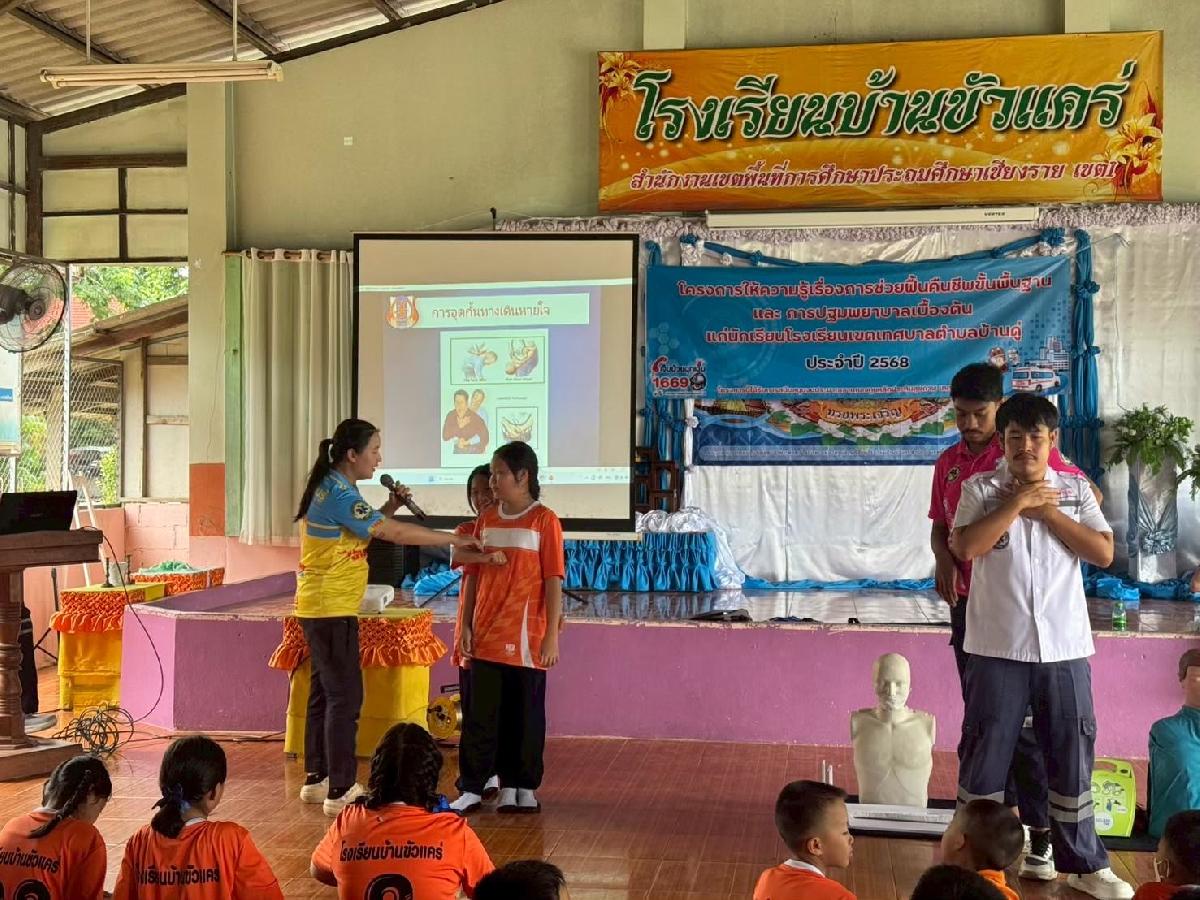 วันนี้ 21 สิงหาคม 2568 ชมรมกู้ชีพเทศบาลตำบลบ้านดู่ ดำเนินการจัดโครงการให้ความรู้เรื่องการช่วยฟื้นคืนชีพขั้นพื้นฐาน และปฐมพยาบาลเบื้องต้นแก่นักเรียนในเขตเทศบาลตำบลบ้านดู่ ณ โรงเรียนบ้านขัวแคร่ ตำบลบ้านดู่ อำเภอเมืองเชียงราย จังหวัดเชียงราย โดยโครงการนี้ได้รับการสนับสนุนงบประมาณจาก กองทุนหลักประกันสุขภาพ เทศบาลตำบลบ้านดู่