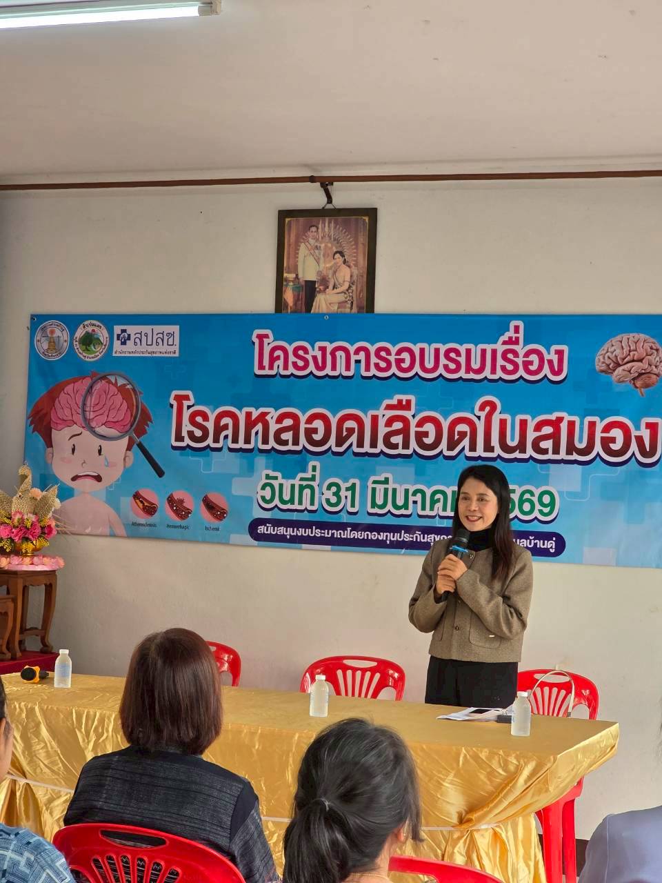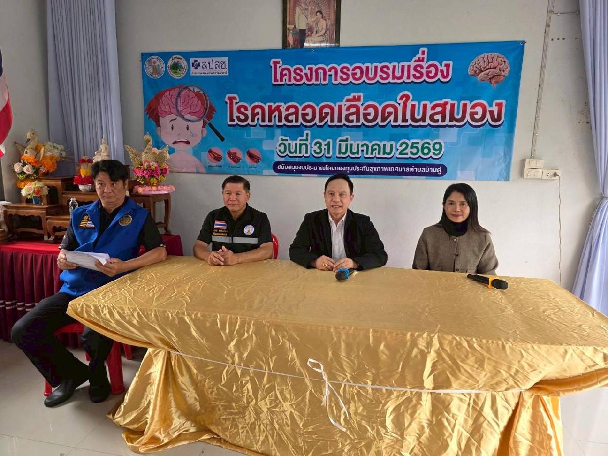 วันนี้ 31 มีนาคม 2569 เวลา 09.00 น. นายวาที ยอดบุตร รองนายกเทศมนตรีตำบลบ้านดู่ พร้อมด้วยคณะผู้บริหาร ให้เกียรติเป็นประธานเปิดโครงการอบรมเรื่องโรคหลอดเลือดในสมอง ณ อาคารอเนกประสงค์บ้านสันปอแตง หมู่ที่ 20 ตำบลบ้านดู่ อำเภอเมืองเชียงราย จังหวัดเชียงราย โดยโครงการนี้ได้รับการสนับสนุนงบประมาณจาก กองทุนหลักประกันสุขภาพ เทศบาลตำบลบ้านดู่