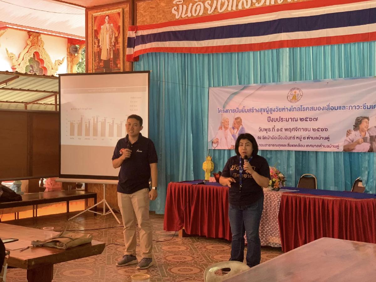 เมื่อวันที่ 15 พฤศจิกายน 2567 กองสาธารณสุขและสิ่งแวดล้อมเทศบาลตำบลบ้านดู่ ได้จัดทำโครงการปันยิ้มสร้างสุขผู้สูงวัยห่างไกลโรคสมองเสื่อมและภาวะซึมเศร้า ประจำปีงบประมาณ 2567 โดยมีวัตถุประสงค์ เพื่อให้ผู้สูงอายุมีความรู้ความเข้าใจเกี่ยวกับโรคสมองเสื่อมและภาวะซึมเศร้าและเพื่อให้ผู้สูงอายุได้รับการคัดกรองภาวะสมองเสื่อมและภาวะซึมเศร้าอย่างทั่วถึง
