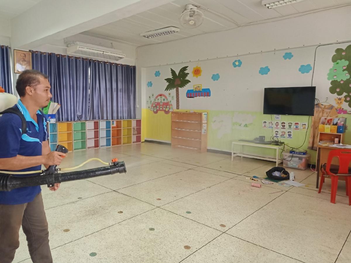 วันนี้ 30 กรกฎาคม 2567 กองสาธารณสุขและสิ่งแวดล้อม เทศบาลตำบลบ้านดู่ได้ออกดำเนินการพ่นน้ำยาฆ่าเชื้อเพื่อป้องกันการระบาดของโรคมือ เท้า ปาก ณ โรงเรียนเทศบาลบ้านดู่ ตำบลบ้านดู่ อำเภอเมืองเชียงราย จังหวัดเชียงราย