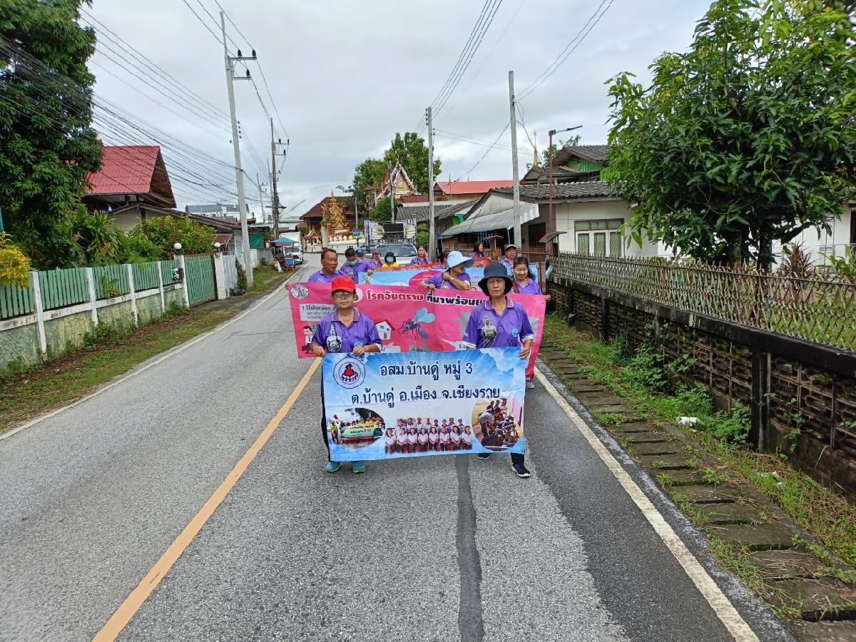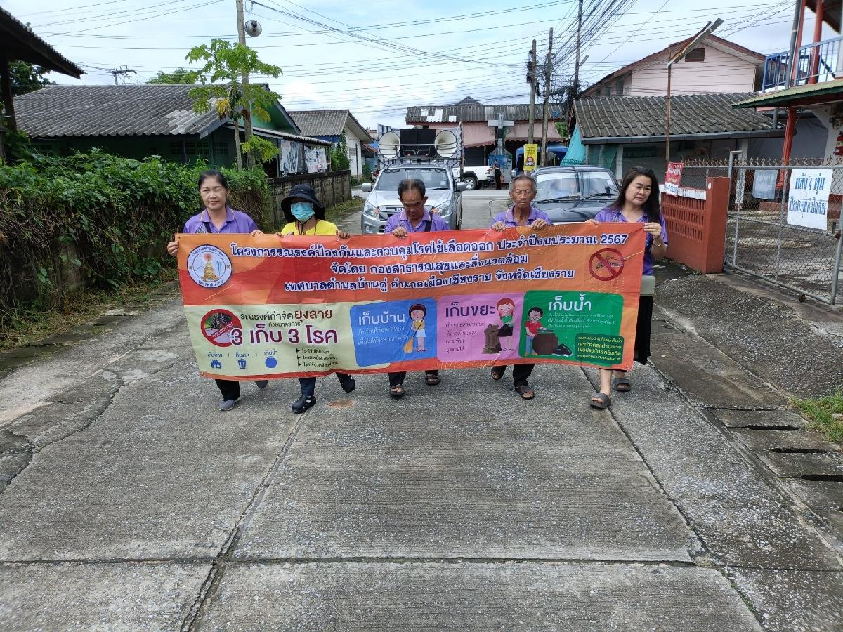 วันนี้ 15 สิงหาคม 2567 กองสาธารณสุขและสิ่งแวดล้อมเทศบาลตำบลบ้านดู่ ร่วมกับ ผู้นำชุมชนหมู่ที่ 3 และ อ.ส.ม หมู่ที่ 3 ได้ออกรณรงค์และประชาสัมพันธ์ป้องกันโรคไข้เลือดออก ณ บ้านดู่ หมู่ที่3 ตำบลบ้านดู่ อำเภอเมืองเชียงราย จังหวัดเชียงราย