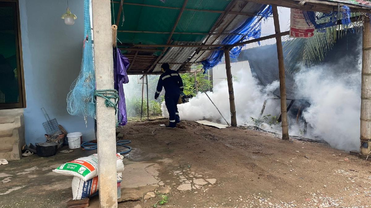 วันนี้ 4 ตุลาคม 2567 กองสาธารณสุขและสิ่งแวดล้อมเทศบาลตำบลบ้านดู่ร่วมกับ อสม. และผู้นำชุมชนหมู่ที่ 2 ได้ออกดำเนินการพ่นหมอกควัน เพื่อป้องกันการแพร่ระบาดและควบคุมโรคไข้เลือดออก