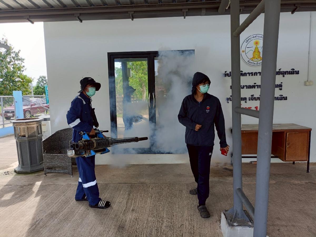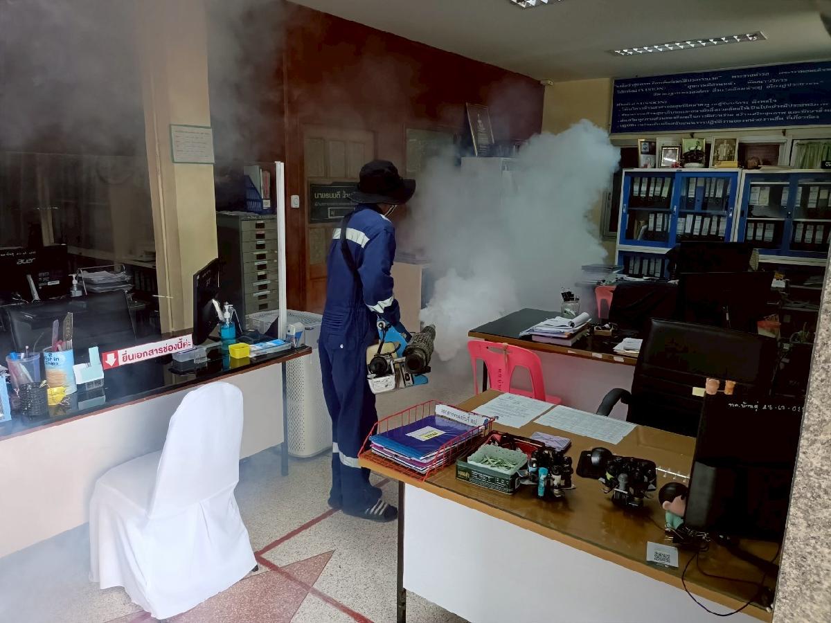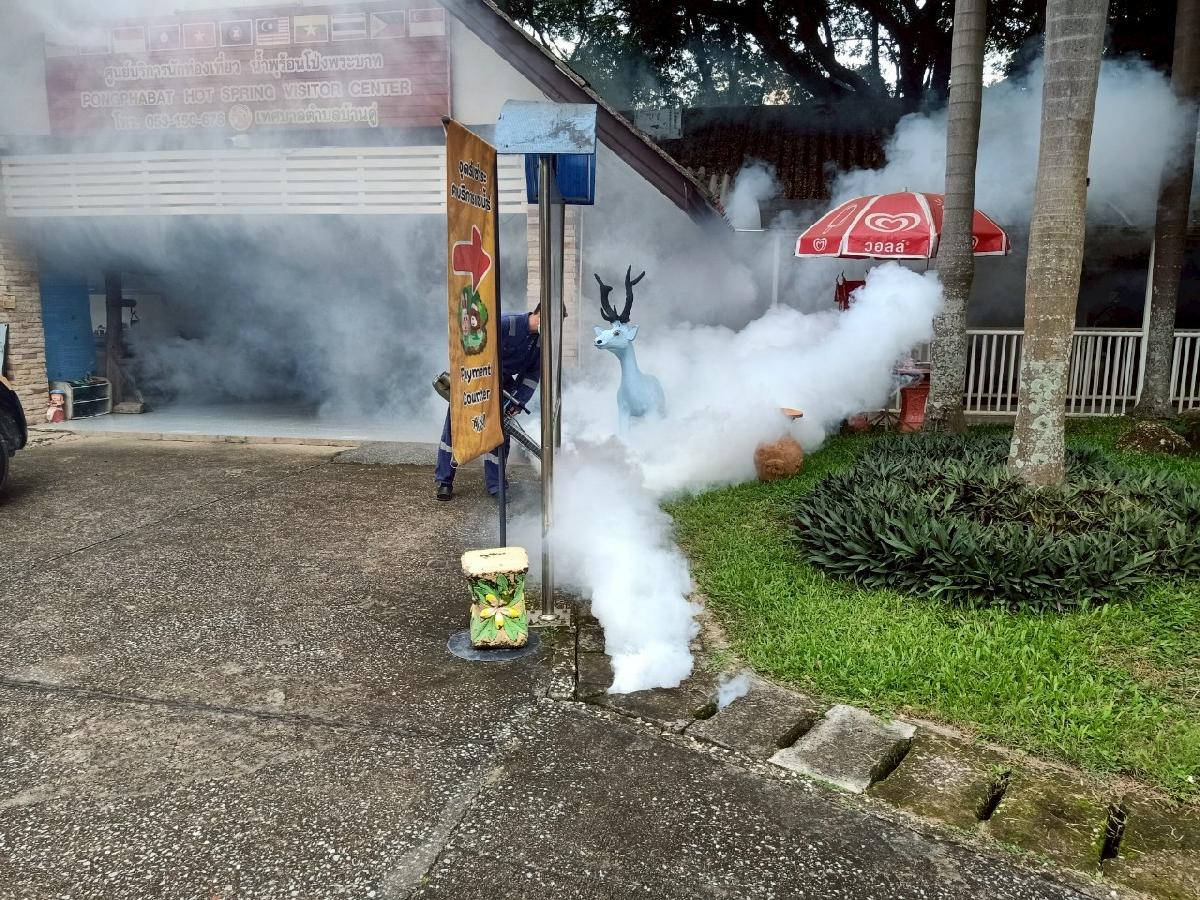 วันที่ 4 กรกฏาคม 2568 กองสาธารณสุขและสิ่งแวดล้อมเทศบาลตำบลบ้านดู่ ได้ดำเนินการพ่นหมอกควัน เพื่อป้องกันการแพร่ระบาดและควบคุมโรคไข้เลือดออก ณ สำนักงานเทศบาลตำบลบ้านดู่ และน้ำพุร้อนโป่งพระบาท ต.บ้านดู่ อ.เมืองเชียงราย จ.เชียงราย