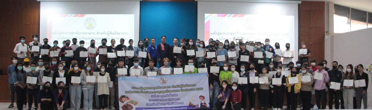 วันที่ 10 กุมภาพันธ์ 2566 อบรมหลักสูตรการสุขาภิบาลอาหาร สำหรับผู้สัมผัสอาหารตามโครงการเฝ้าระวังและควบคุมสุขาภิบาลอาหารปีงบประมาณ 2566
