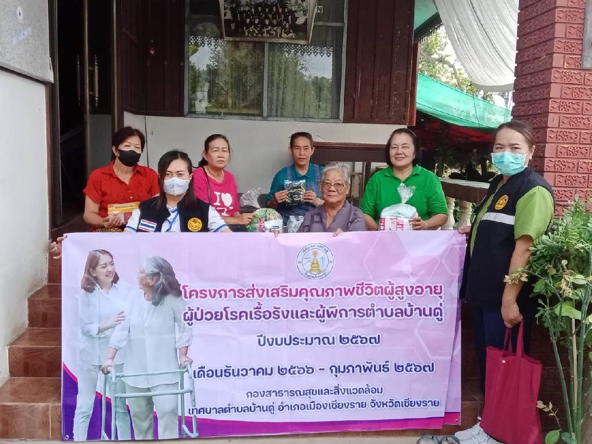 กองสาธารณสุขและสิ่งแวดล้อมเทศบาลตำบลบ้านดู่ ได้ดำเนินโครงการส่งเสริมคูรภาพชีวิตผู้สูงอายุ ผู้ป่วยเรื้อรัง และผู้พิการตำบลบ้านดู่ ปีงบประมาณ 2567 หมู่ที่ 1-20 ระหว่างวันที่ 6 ธันวาคม 2567 ถึง 30 มกราคม 2567