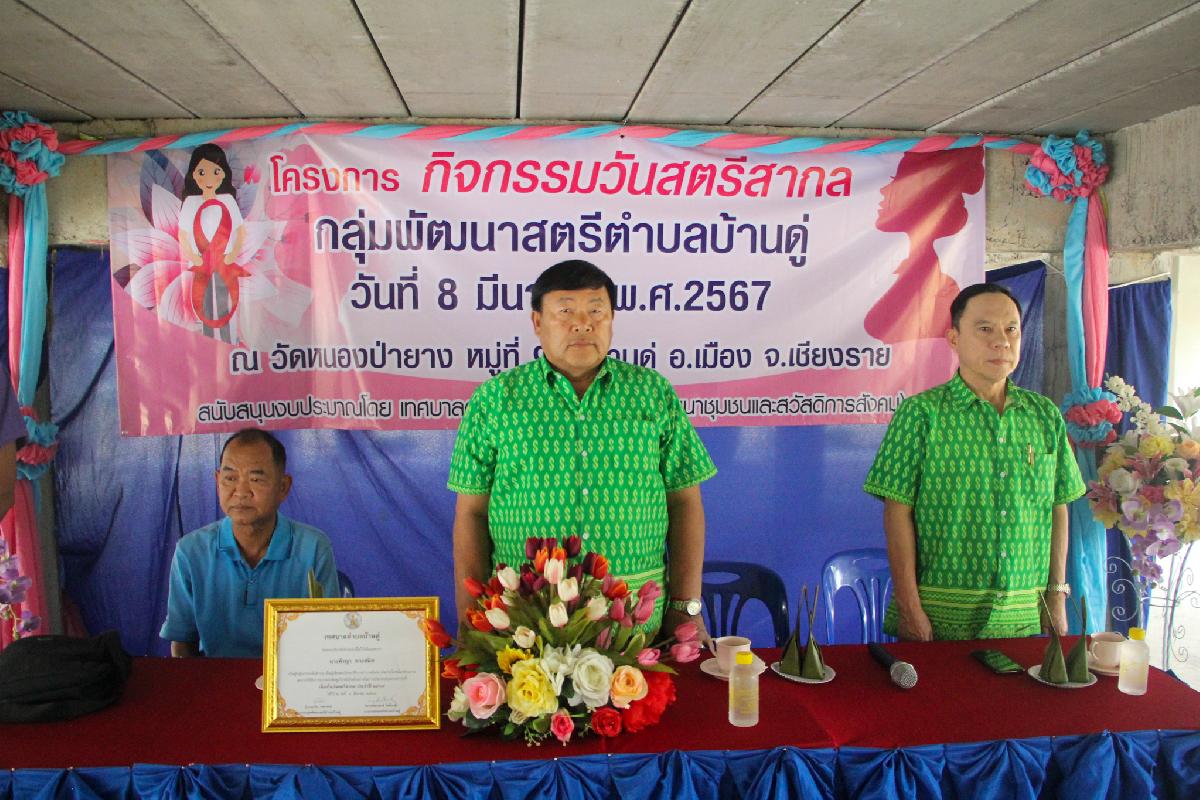 วันนี้ 27 มีนาคม 2567 เวลา 09.00 น.นายพัฒนพงษ์ โพธิ์เกตุ นายกเทศมนตรีตำบลบ้านดู่ ให้เกียรติเป็นประธานเปิดโครงการวันสตรีสากล ตำบลบ้านดู่ ณ วัดป่าแฝกหนองป่ายาง หมู่ที่ 9 ตำบลบ้านดู่ อำเภอเมืองเชียงราย จังหวัดเชียงราย ซึ่งได้รับการสนับสนุนงบประมาณจากเทศบาลตำบลบ้านดู่ โดยมี นายวาที ยอดบุตร รองนายกเทศมนตรีตำบลบ้านดู่ และพนักงานกลุ่มงานพัฒนาชุมชนและสวัสดิการสังคม เข้าร่วมพิธีเปิดโครงการในครั้งนี้