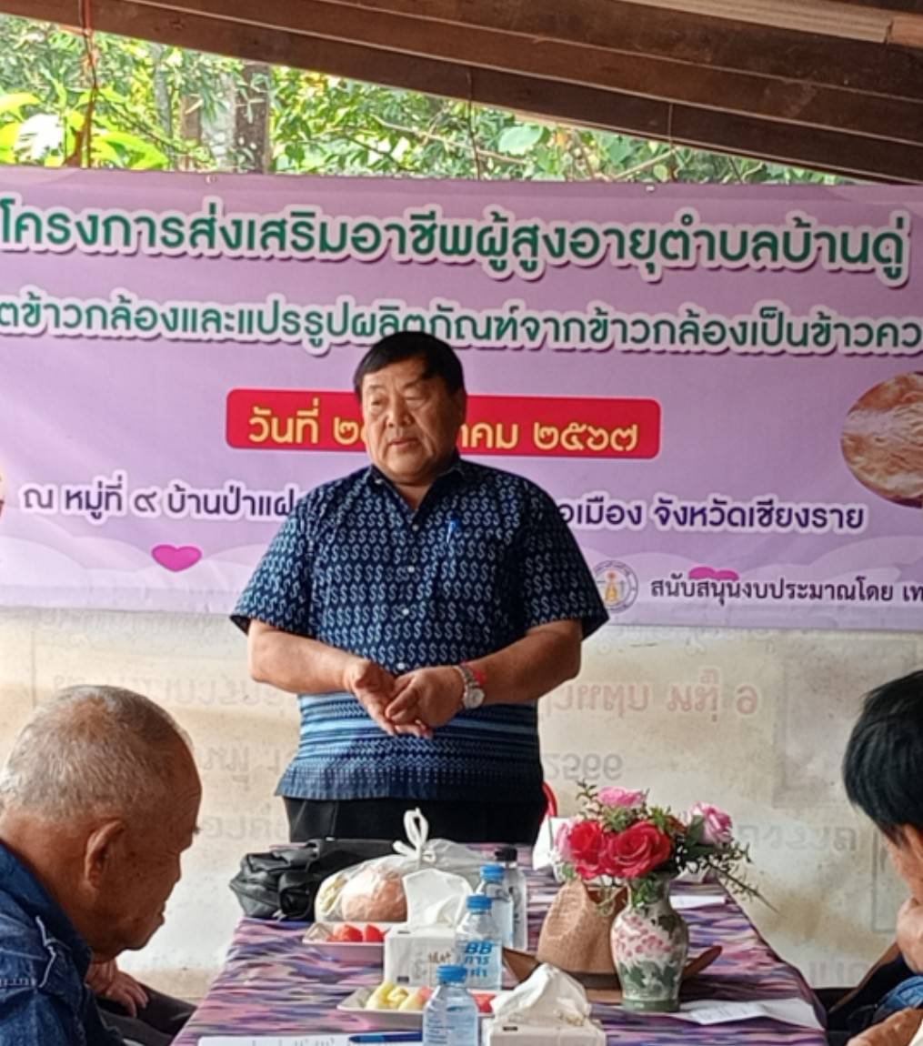 28 มีนาคม 2567 นายพัฒนพงษ์ โพธิ์เกตุ นายกเทศมนตรีตำบลบ้านดู่ ให้เกียรติเป็นประธานเปิดโครงการส่งเสริมอาชีพผู้สูงอายุตำบลบ้านดู่ด้วยการผลิตข้าวกล้องและแปรรูปผลิตภัณฑ์จากข้าวกล้องเป็นข้าวควบ ข้าวเเคบ เพื่อส่งเสริมกลุ่มผู้สูงอายุในฐานะพลังของสังคม ช่วยให้ผู้สูงอายุมีรายได้เพืยงพอต่อการดำรงชีวิต ณ หมู่ที่ 9 บ้านป่าแฝก ตำบลบ้านดู่ อำเภอเมืองเชียงราย จังหวัดเชียงราย