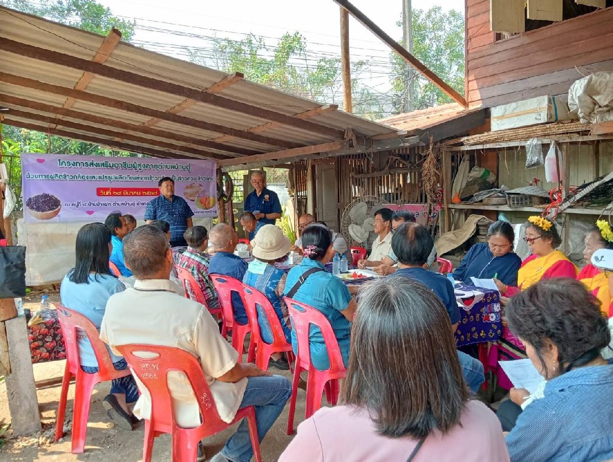 28 มี.ค. 67 นายกเทศมนตรีตำบลบ้านดู่ เปิดโครงการส่งเสริมอาชีพผู้สูงอายุตำบลบ้านดู่ด้วยการผลิตข้าวกล้องและแปรรูปผลิตภัณฑ์จากข้าวกล้องเป็นข้าวควบ ข้าวเเคบ