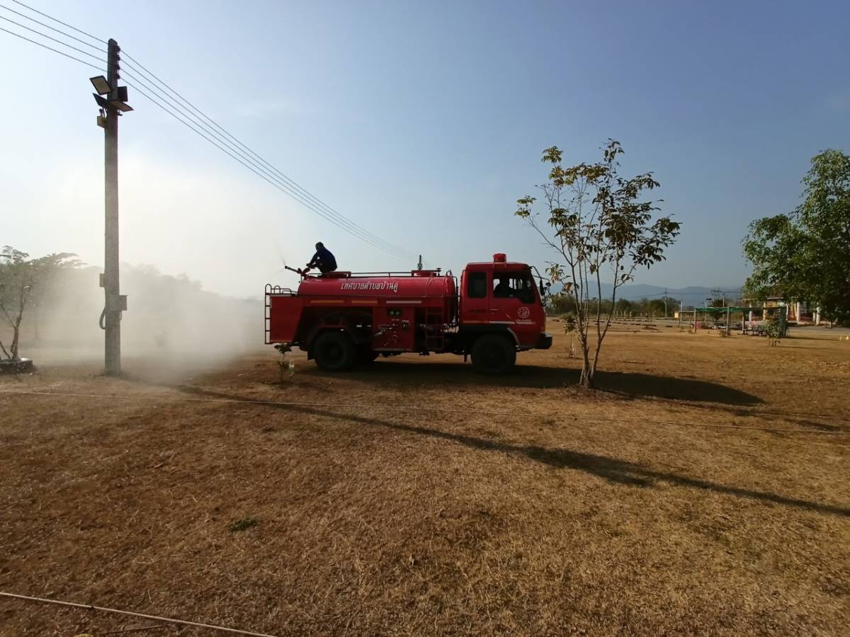 งานป้องกันและบรรเทาสาธารณภัย สำนักปลัด เทศบาลตำบลบ้านดู่ ได้จัดกิจกรรมการฉีดพ่นละอองน้ำแก้ไขปัญหาไฟป่าหมอกควัน และฝุ่นละอองขนาดเล็ก PM 2.5 เพื่อสร้างความชุ่มชื้นในอากาศและลดการกระจายตัวของฝุ่นขนาดใหญ่