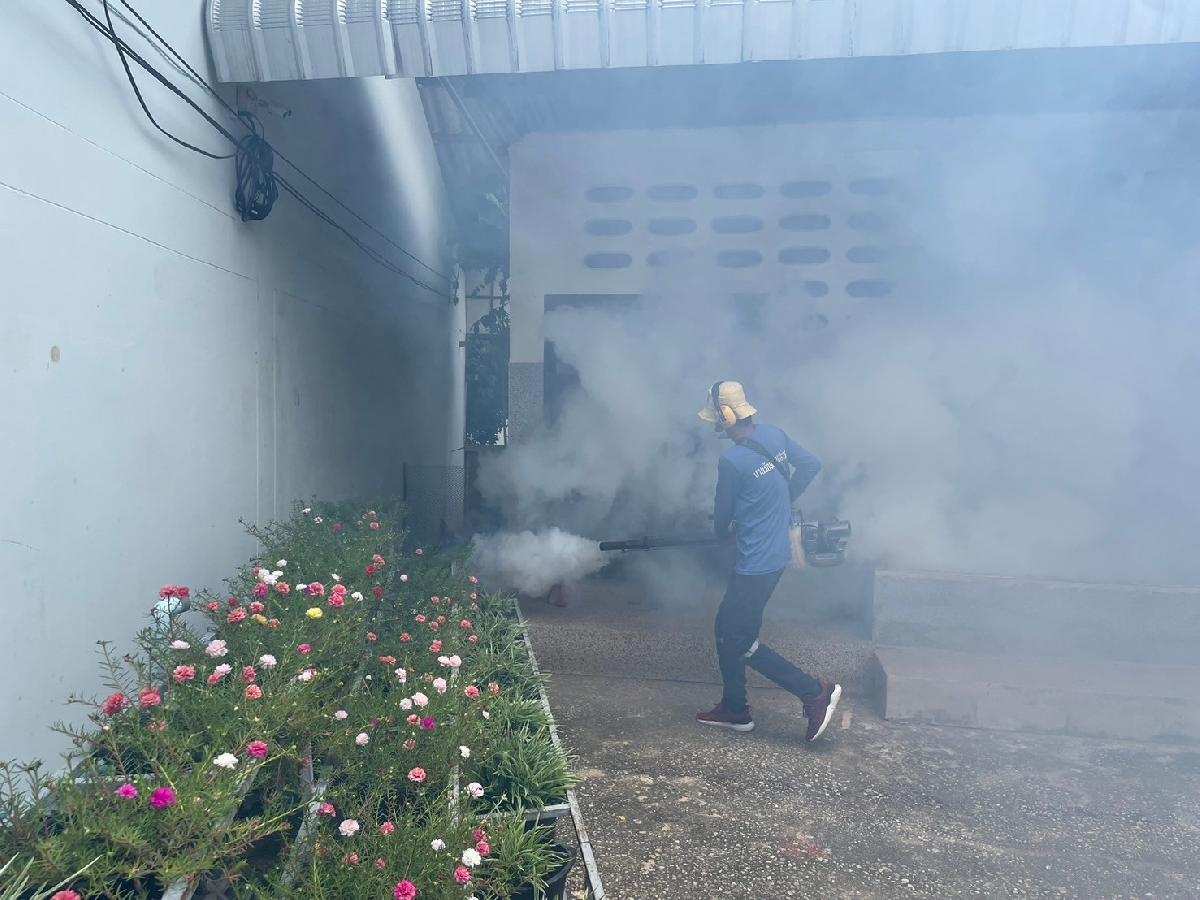 เมื่อวันที่ 8 กรกฎาคม 2567 กองสาธารณสุขและสิ่งแวดล้อมเทศบาลตำบลบ้านดู่ร่วมกับ สมาชิกสภาเทศบาลตำบลบ้านดู่ อสม. และผู้นำชุมชนหมู่ที่ 12 ได้ออกดำเนินการสำรวจและกำจัดแหล่งเพาะพันธุ์ลูกน้ำยุงลายและพ่นหมอกควันเพื่อป้องกันการแพร่ระบาดและควบคุมโรคไข้เลือดออกภายในพื้นที่ตำบลบ้านดู่ หมู่ที่ 12 และโรงเรียนบ้านป่าสักไก่ ตำบลบ้านดู่ อำเภอเมือง จังหวัดเชียงราย