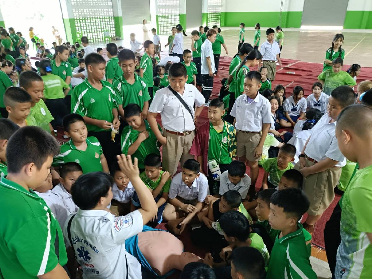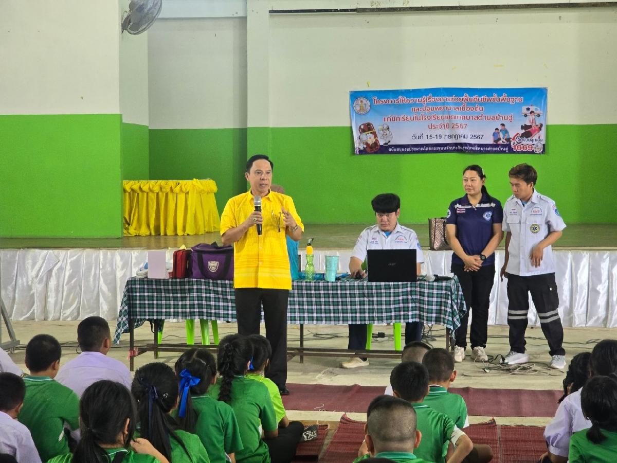 วันนี้ 15 กรกฎาคม 2567 เวลา 13.00 น. นายวาที ยอดบุตร รองนายกเทศมนตรีตำบลบ้านดู่ ให้เกียรติเป็นประธานเปิดโครงการให้ความรู้เรื่องการช่วยฟื้นคืนชีพขั้นพื้นฐาน และปฐมพยาบาลเบื้องต้นแก่นักเรียนในเขตเทศบาลตำบลบ้านดู่ ณ ศูนย์พละศึกษาโรงเรียนบ้านดู่(สหราษฎร์พัฒนาคาร) ตำบลบ้านดู่ อำเภอเมืองเชียงราย จังหวัดเชียงราย โดยโครงการนี้ได้รับการสนับสนุนงบประมาณจาก กองทุนหลักประกันสุขภาพ เทศบาลตำบลบ้านดู่