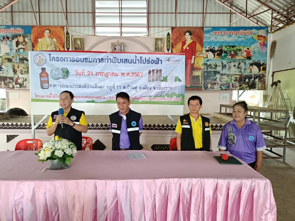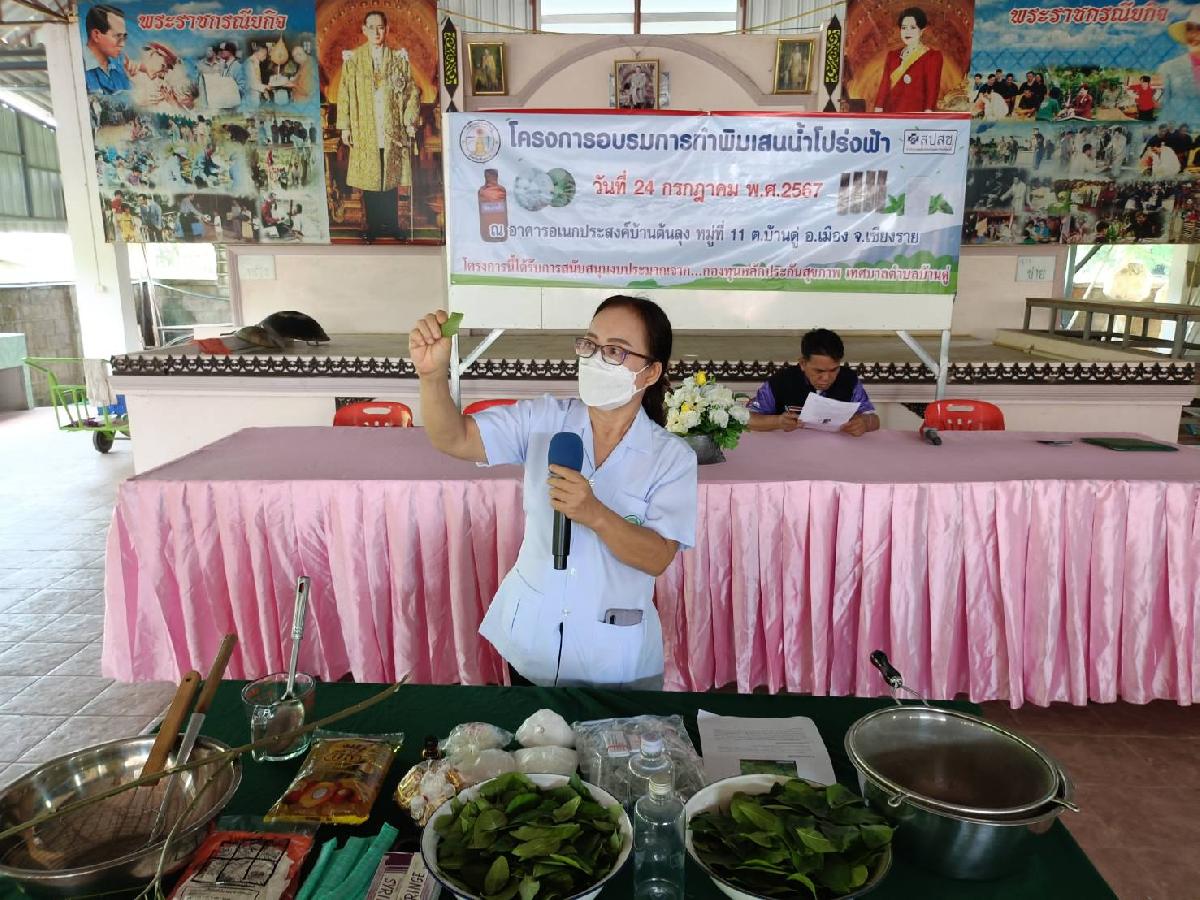 วันนี้ 24 กรกฎาคม 2567 เวลา 9.00 น. นายวาที ยอดบุตร รองนายกเทศมนตรีตำบลบ้านดู่ ให้เกียรติเป็นประธานเปิดโครงการอบรมการทำพิมเสนน้ำโปร่งฟ้า ณ อาคารอเนกประสงค์บ้านต้นลุง หมู่ที่ 11 ตำบลบ้านดู่ อำเภอเมืองเชียงราย จังหวัดเชียงราย โดยโครงการนี้ได้รับการสนับสนุนงบประมาณจาก กองทุนหลักประกันสุขภาพ เทศบาลตำบลบ้านดู่