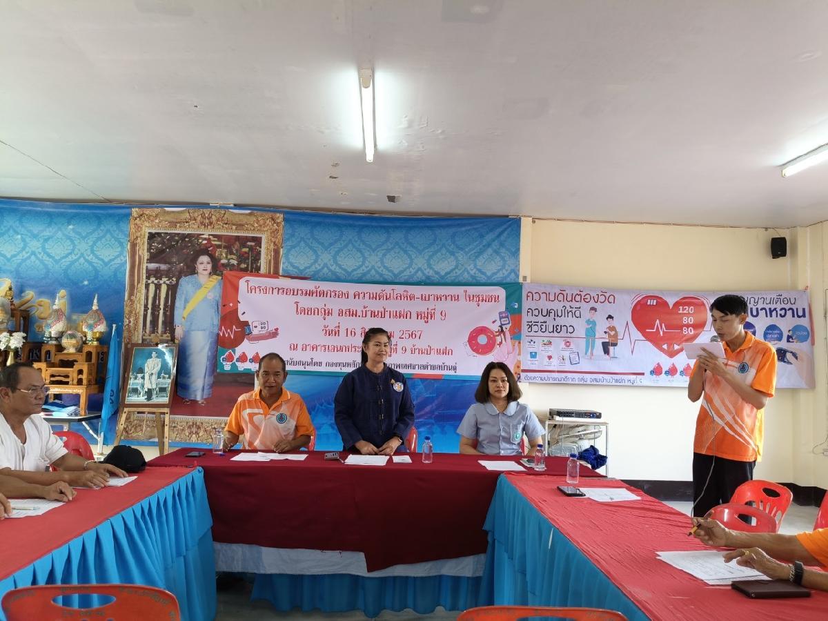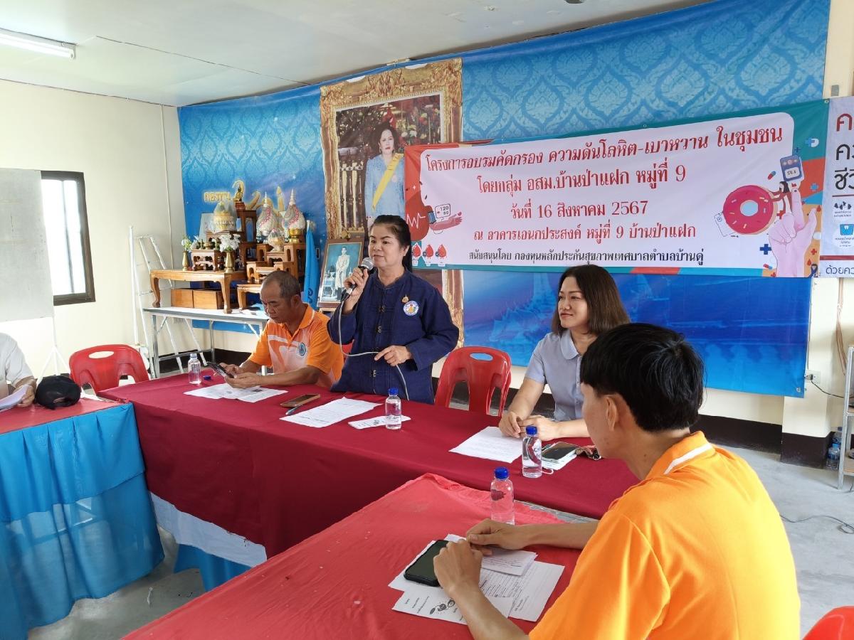 วันนี้ 16 สิงหาคม 2567 เวลา 09.00 น.ที่ปรึกษานายกเทศมนตรีตำบลบ้านดู่ เป็นประธานเปิดโครงการอบรมคัดกรอง ความดันโลหิต-เบาหวาน ในชุมชน ณ อาคารอเนกประสงค์บ้านป่าแฝก หมู่ที่ 9